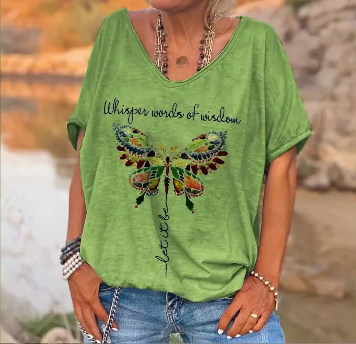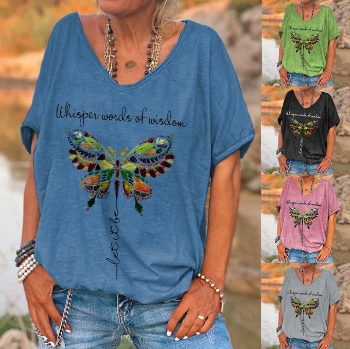 OEM Factory Casual Wear Screen Print V-neck Customizable Women T Shirt