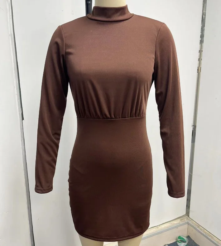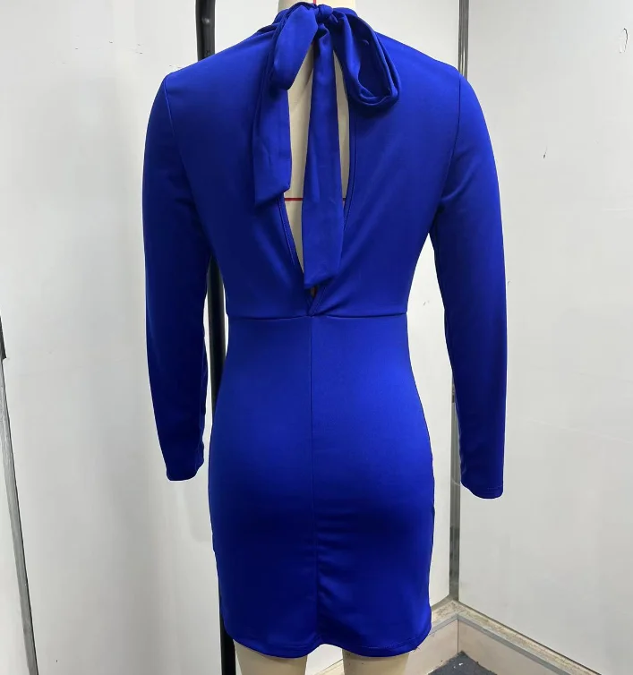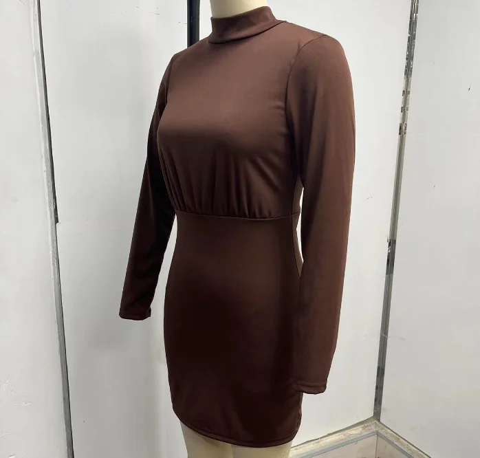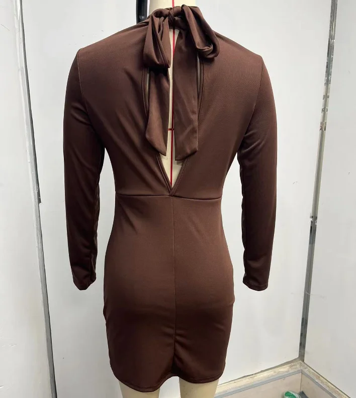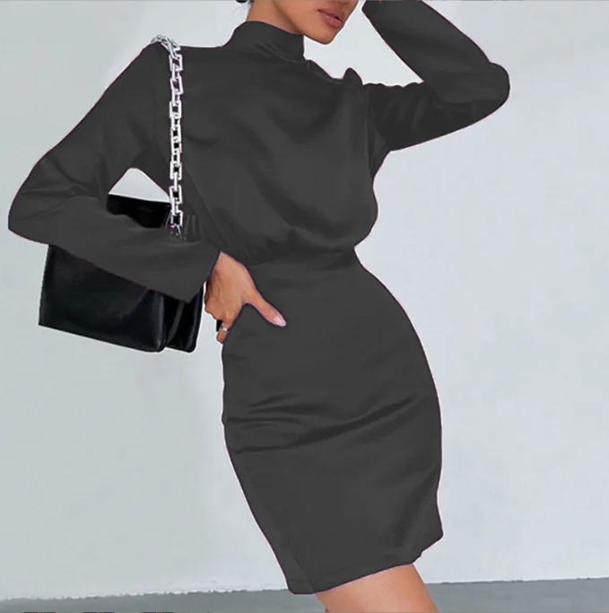 OEM Factory Casual Wear Turtleneck Bow Wrap Tight Solid Sexy Short Women Dress