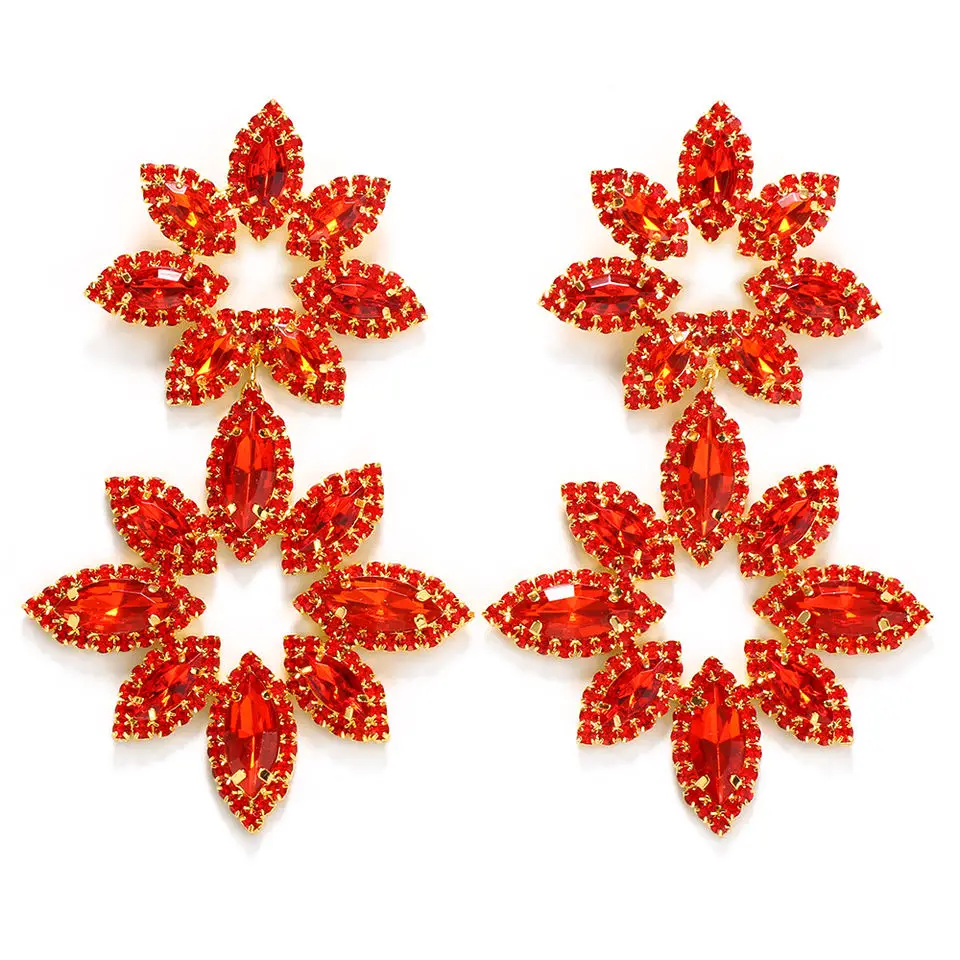 OEM/ODM Fashion jewelry 2023 new arrival rhinestone earrings big flower plant Stud vintage silver plated fine jewelry earrings