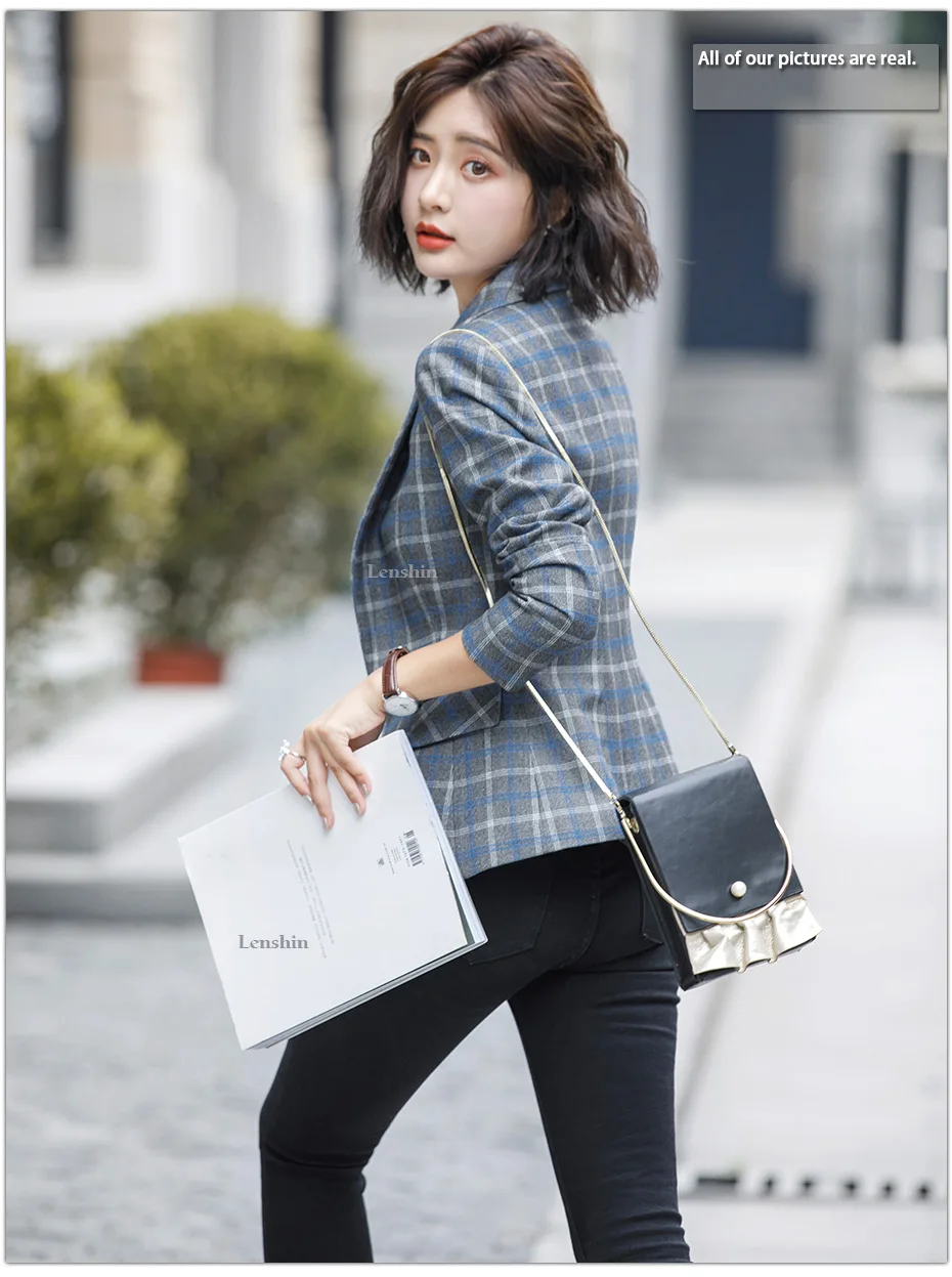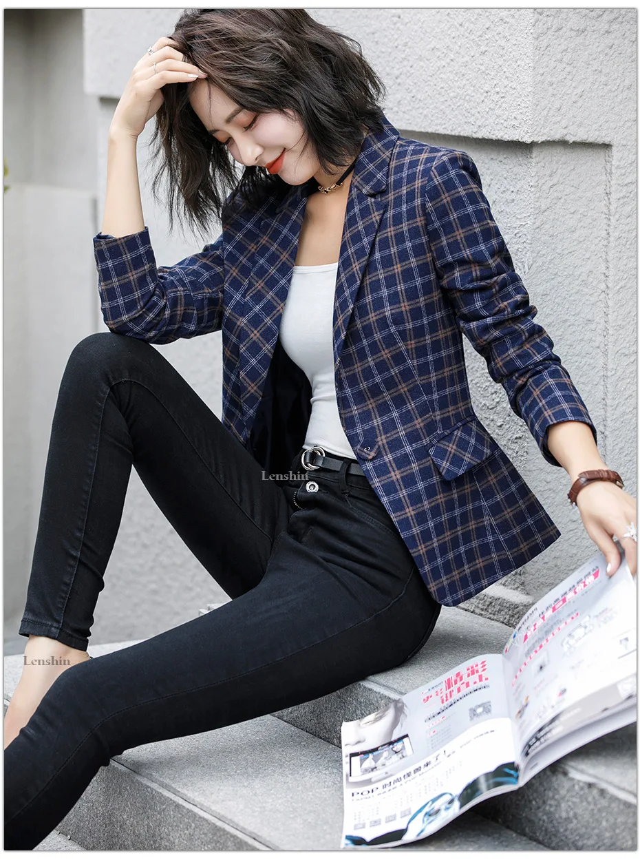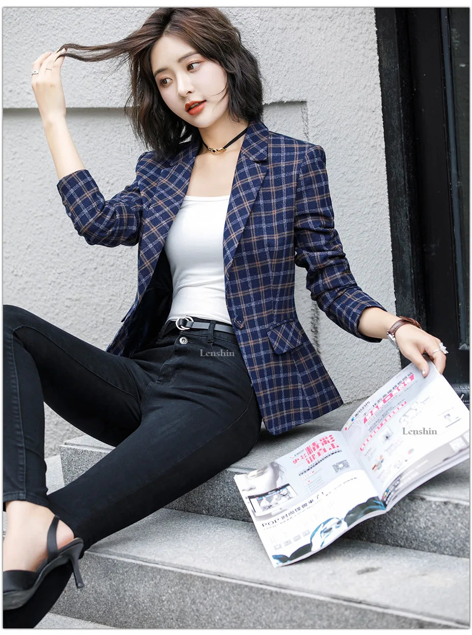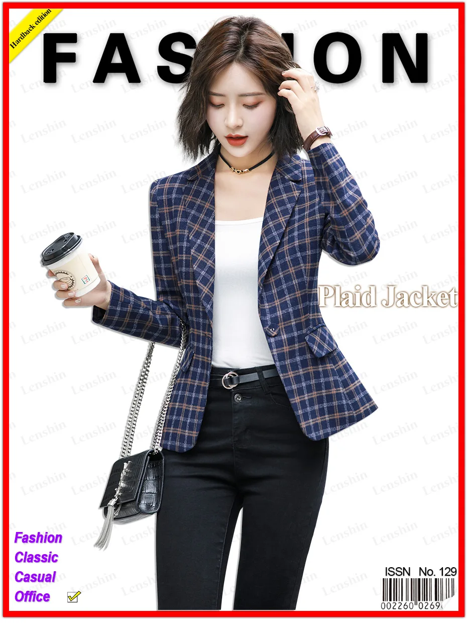 Wholesale Dropship Soft and Comfortable High-quality Plaid Jacket with Pocket Office Lady Casual Style Blazer Single Button Coat