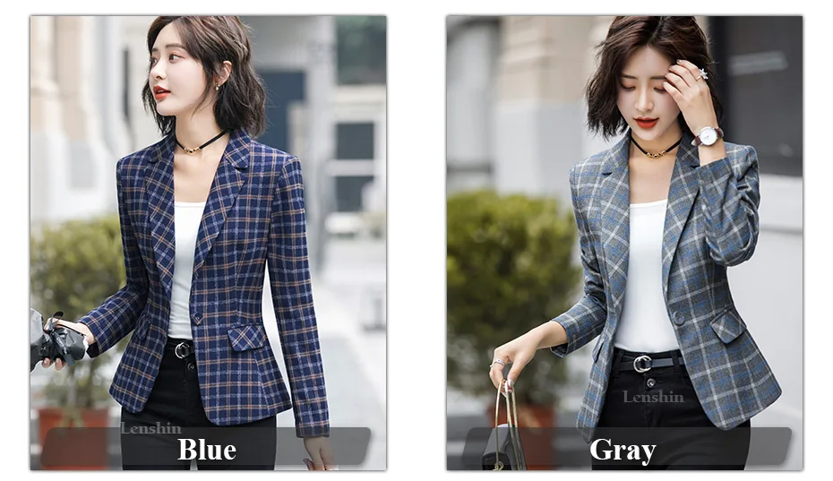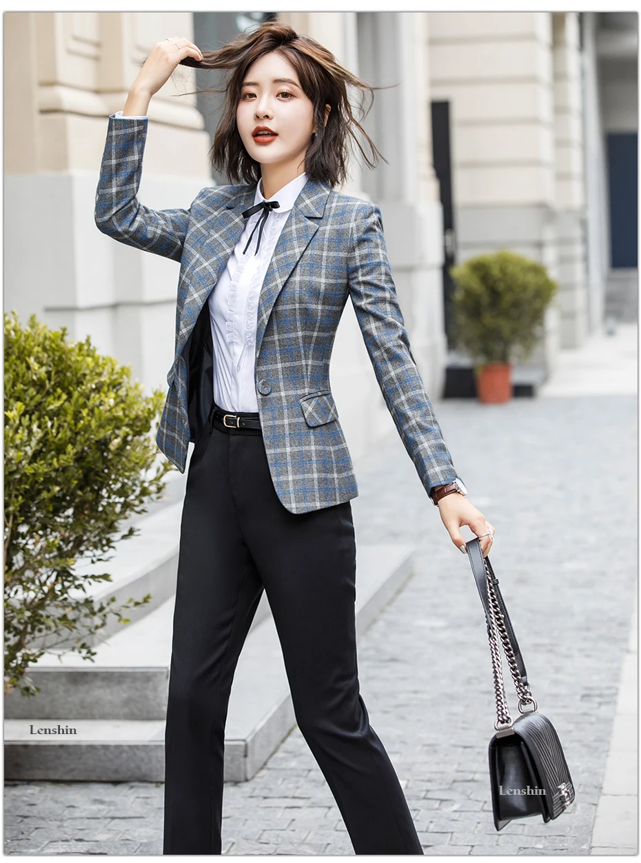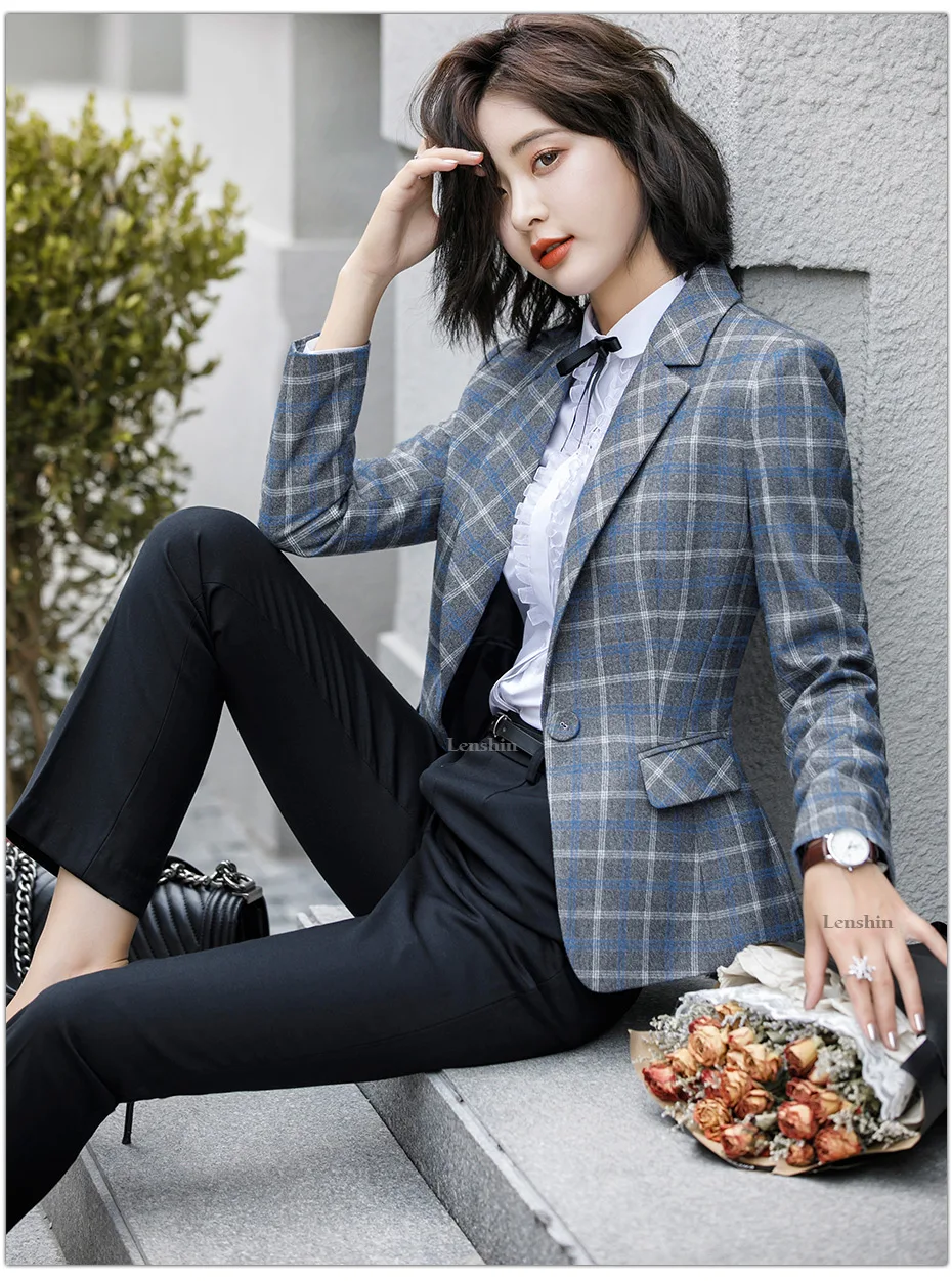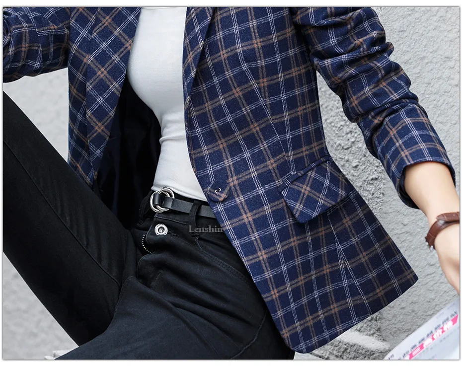 Wholesale Dropship Soft and Comfortable High-quality Plaid Jacket with Pocket Office Lady Casual Style Blazer Single Button Coat