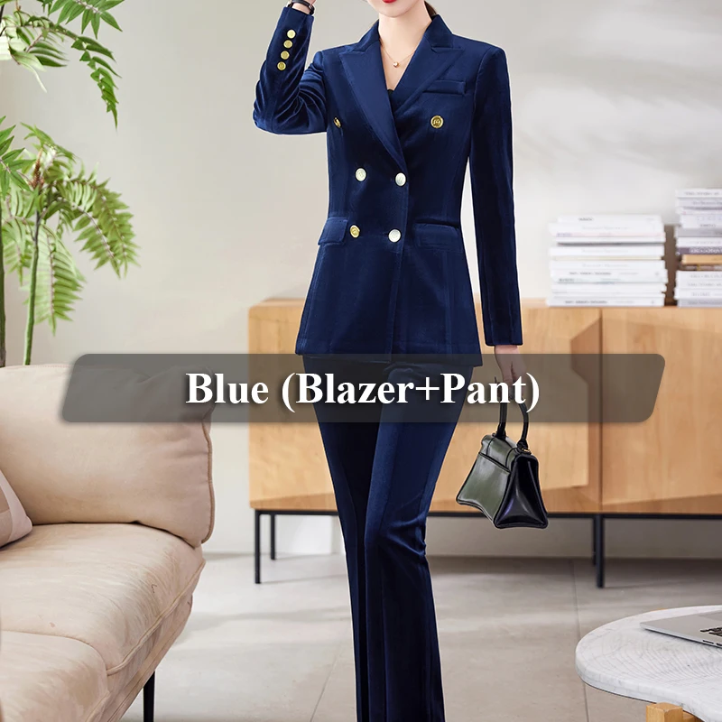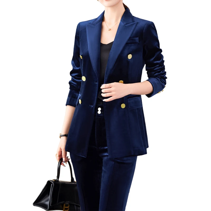 OEM Wholesale 2 Piece Solid Set for Women Business Office Lady Work Wear Double Breasted Fashion Clothes Blazer with Trousers