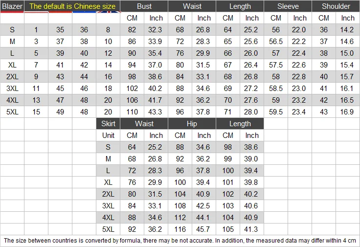 The size between countries is converted by formula, there may be not accurate.