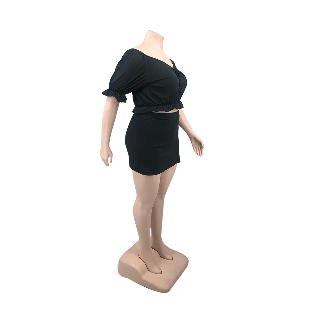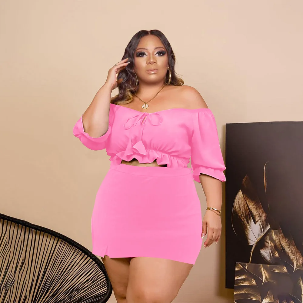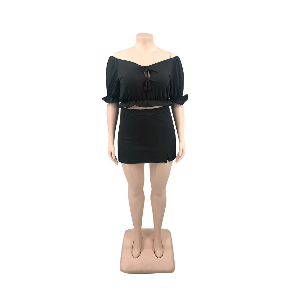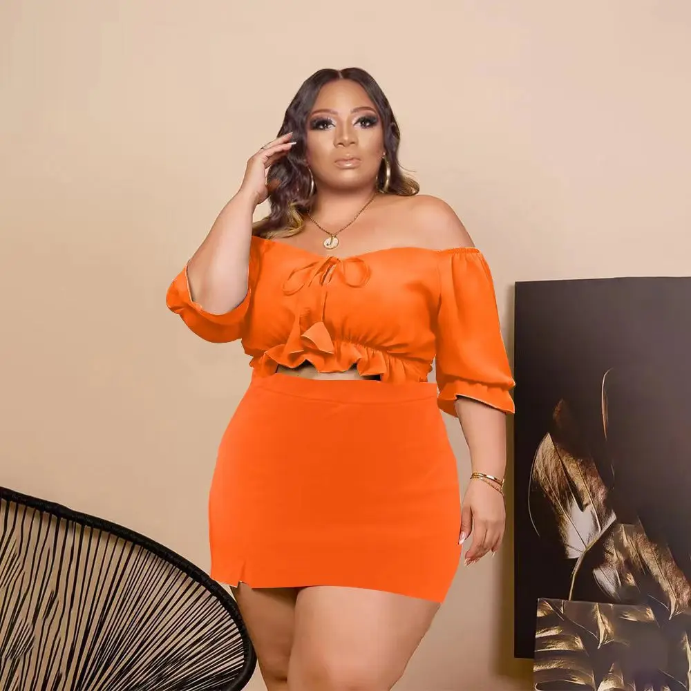 Off Shoulder Elegant Big Fat 5x Sexy Mini Dress Crop Top And Skirt Sets Women 2 Piece Outfits