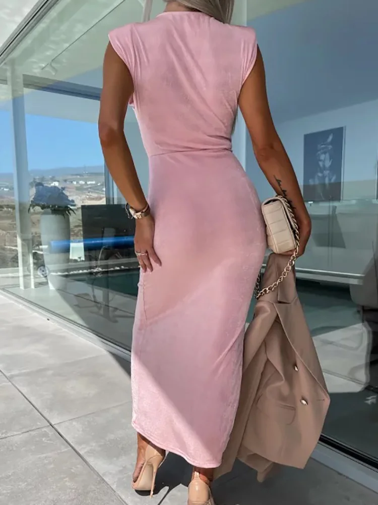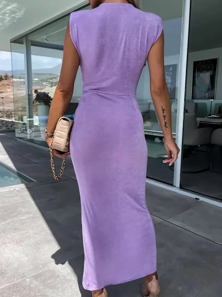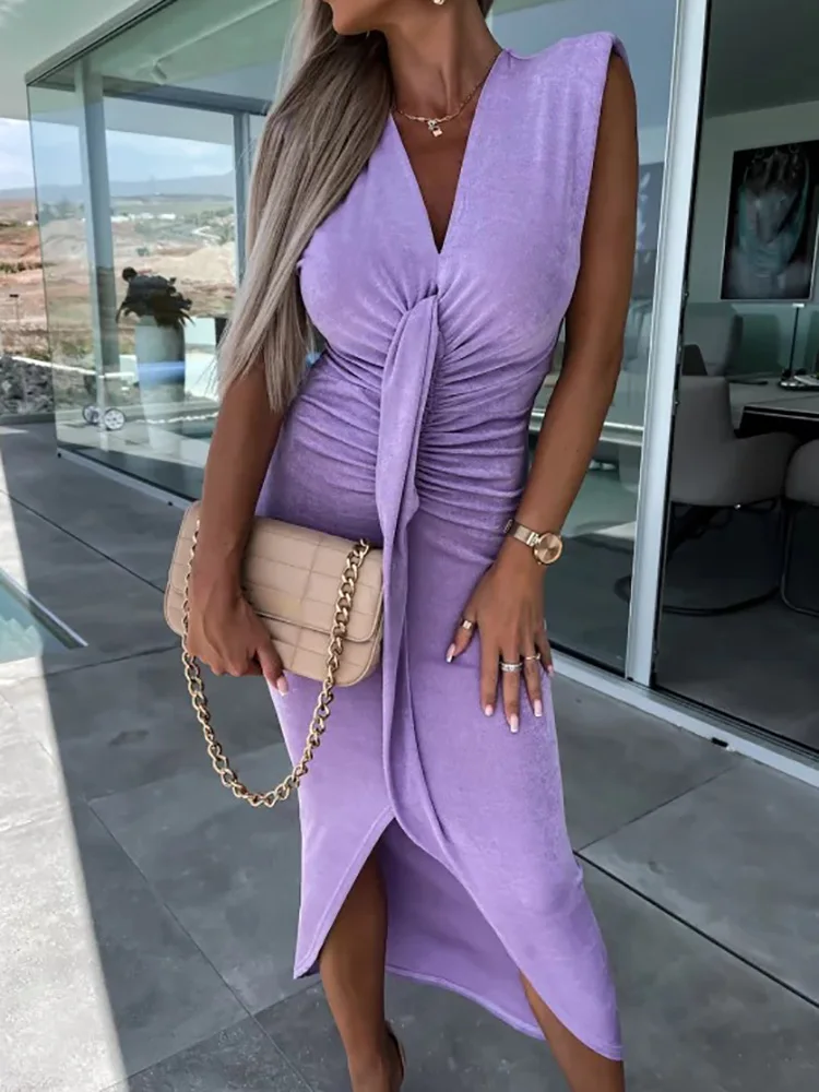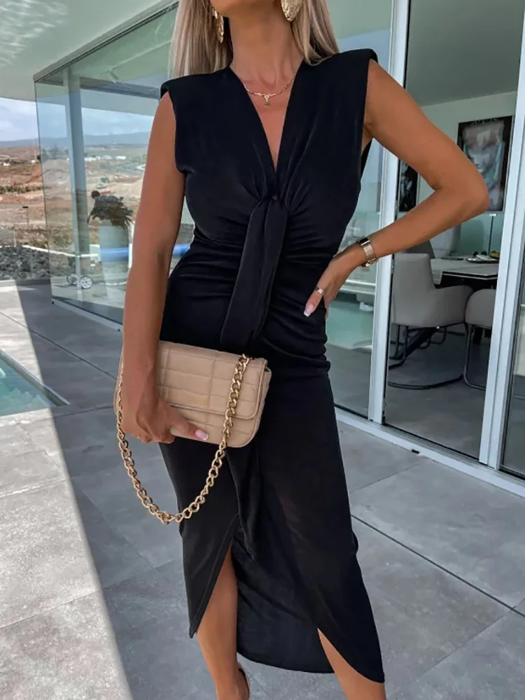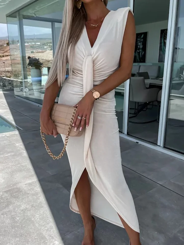 Office Lady Loungewear Deep V-Neck Maxi Dress Women Summer Sleeveless Solid Slim Fit Folds Party Dress Streetwear Dropshipping