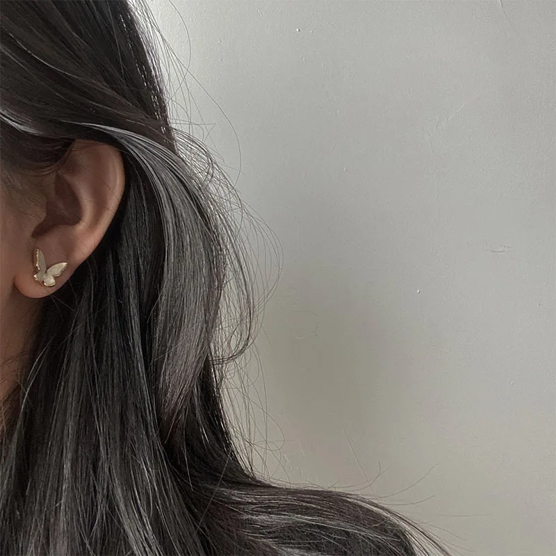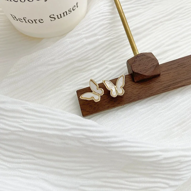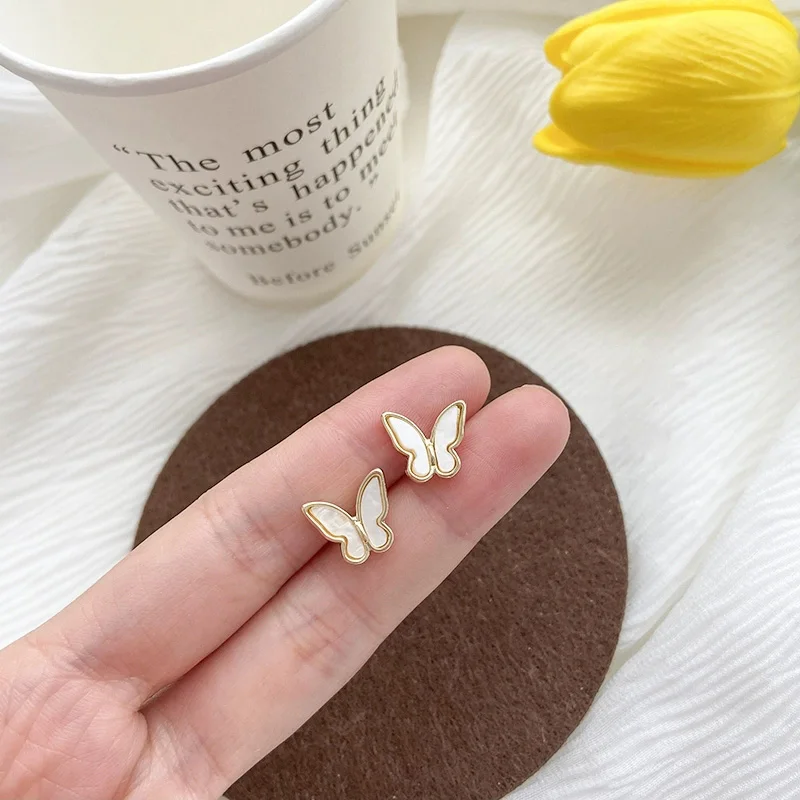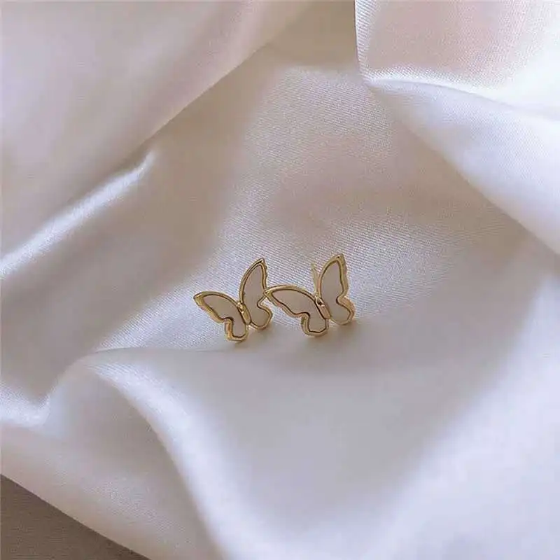 Oil Painting Green Butterfly Alloy Small Stud Earrings Handmade Charm Women Girl Trendy Simple Ear Studs Jewelry