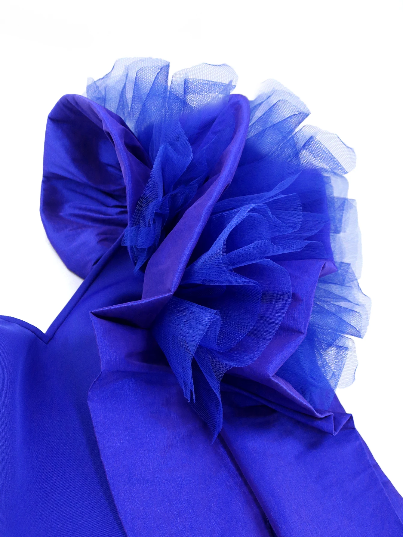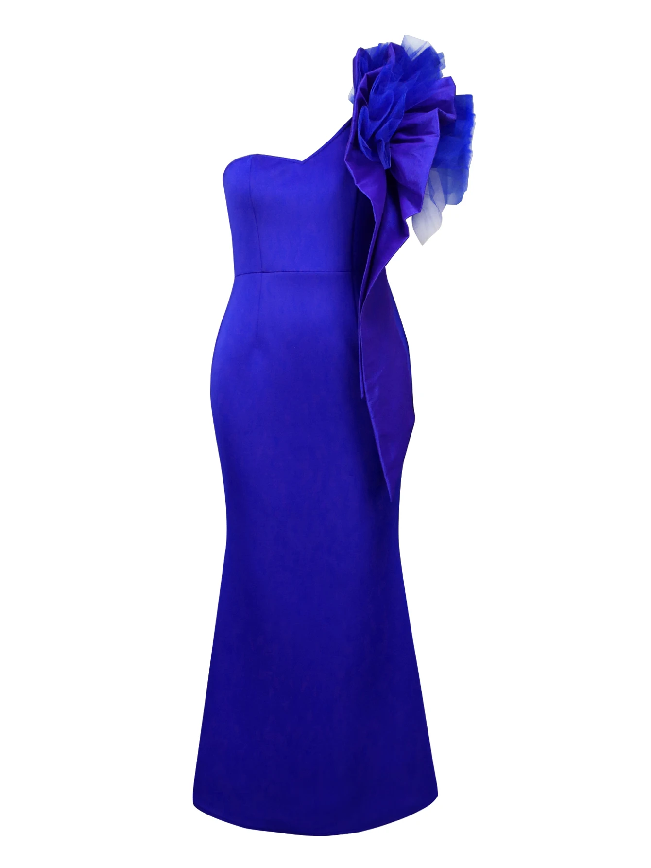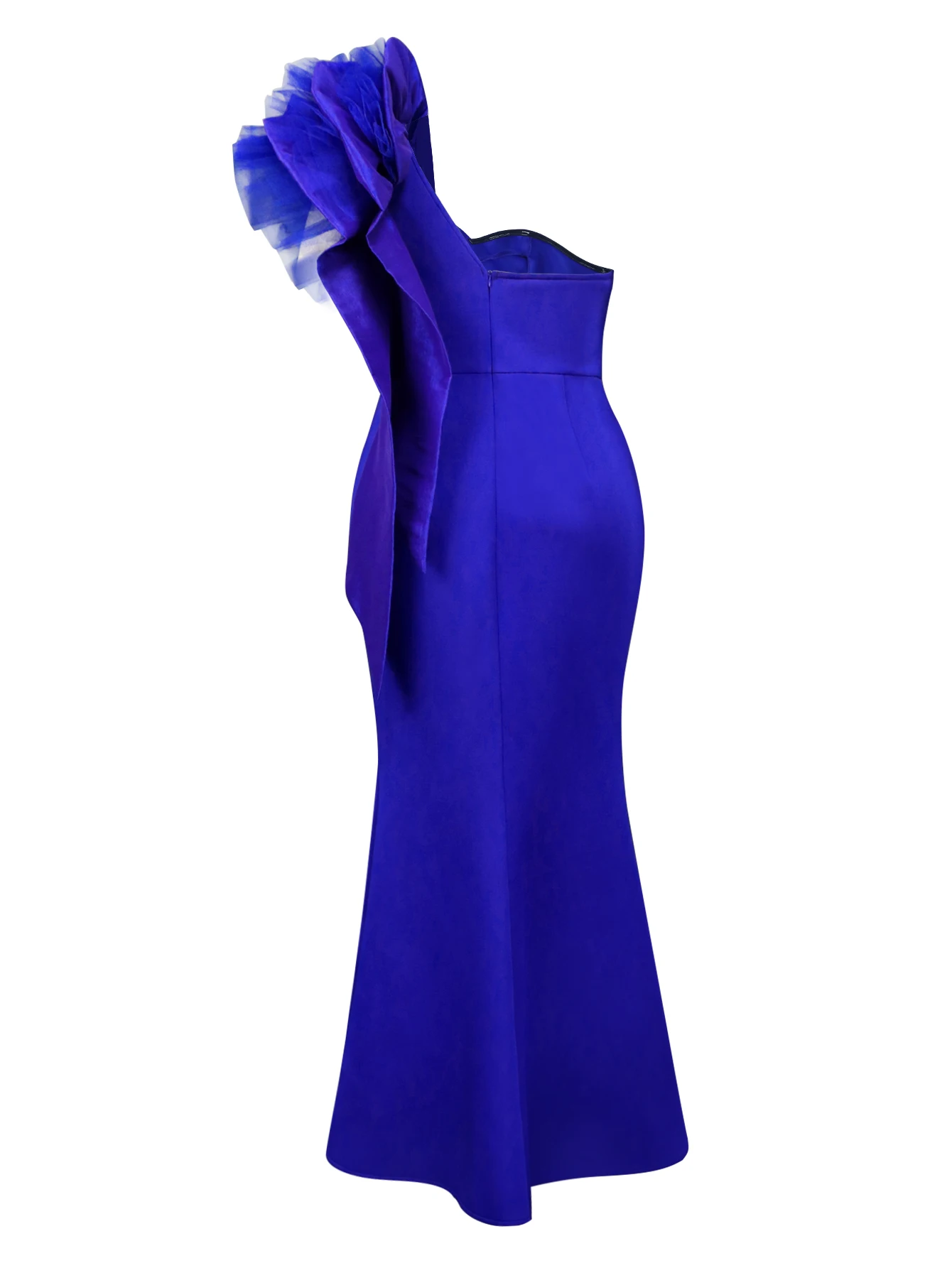 One Shoulder Ruffle Mesh Flower Fishtail Maxi Evening Dresses Women
