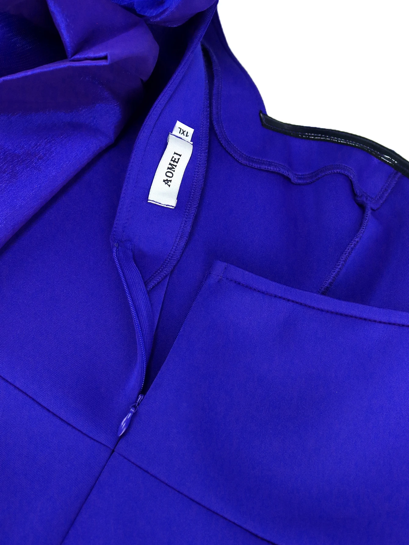 Producrt Name:One Shoulder Ruffle Mesh Flower Fishtail Maxi Evening Dresses Women