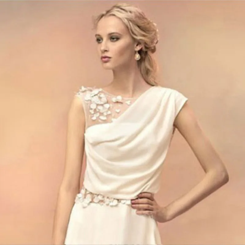 One Shoulder Side Slit Beading Chiffon Simple Wedding DressSleeveless Lace Spliced Evening Dress drop shipping fulfill