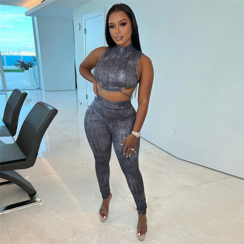 Online shopping summer outfits sleeveless lounge wear digital print 2 piece set women