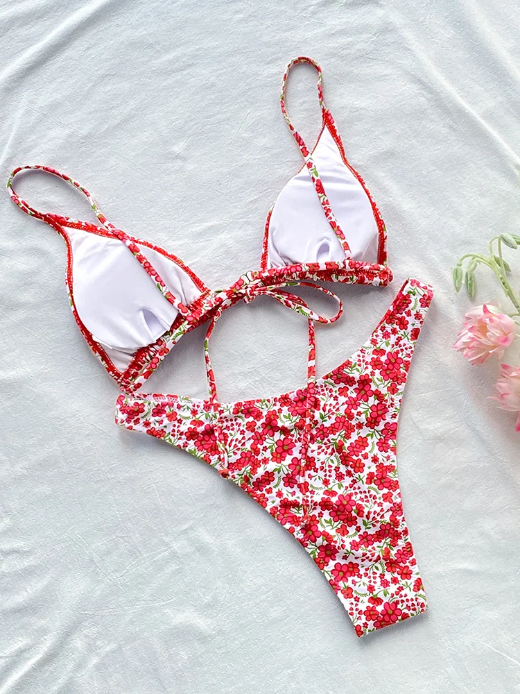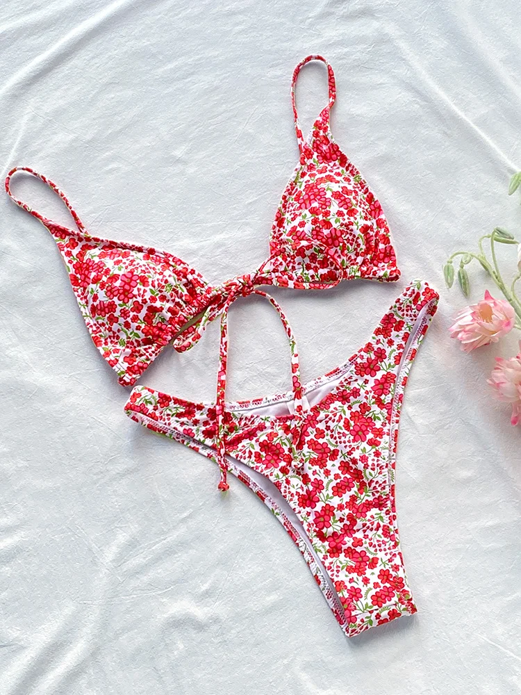 OOTN Bathing Suit Women Swimwear High Waist Bikinis Beach 2023 Biquini String Swimsuit High Cut Bikini Set Floral Print Bikini