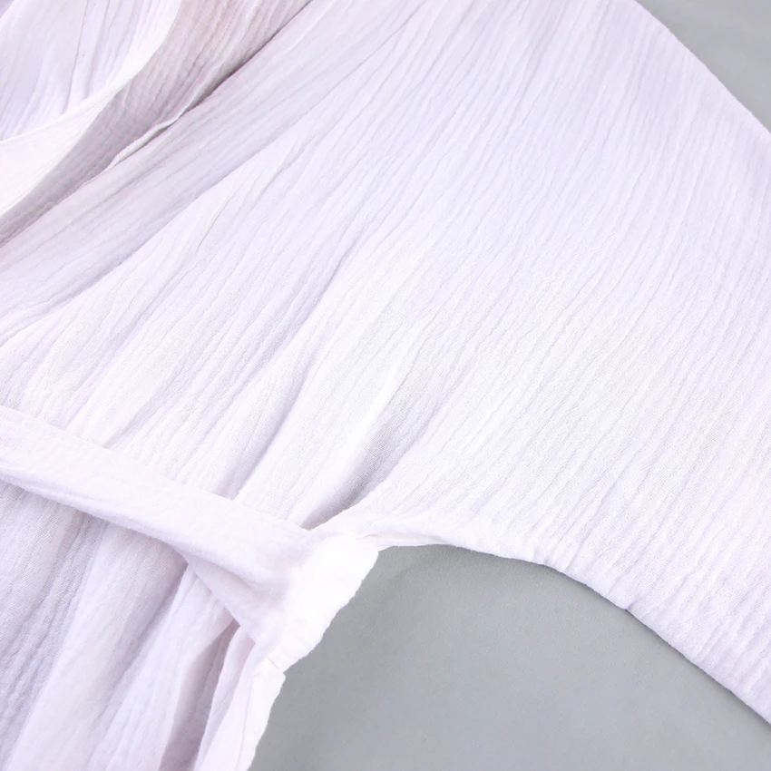 OOTN Cotton Long Sleeve Pajamas Sashes Loose Suits With Shorts 2023 Spring Casual Ruffle Women's Nightwear White 2 Piece Sets
