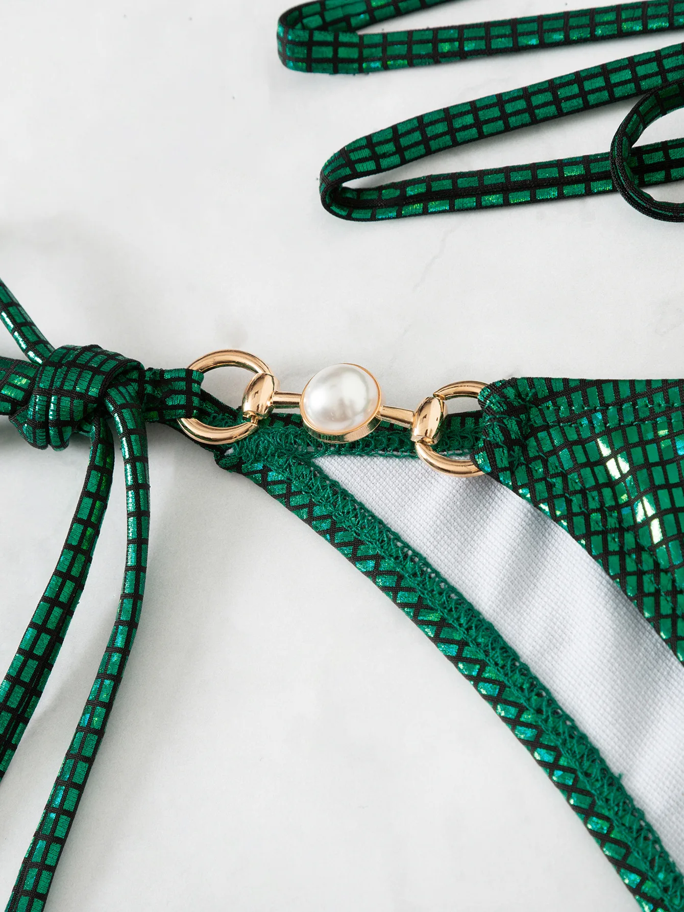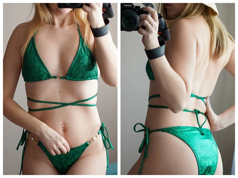 OOTN Female Swimsuit Two-piece halter bikini set Bather Bathing Suit Shiny Sequins Wrap Around Halter Bikini Women Swimwear