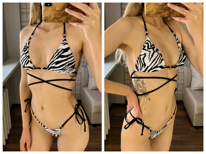 OOTN Micro Bikini Set Summer Swim Suit Women 2023 Leopard Swimsuit Sexy Brazilian Thong halter bikini custom bikini set
