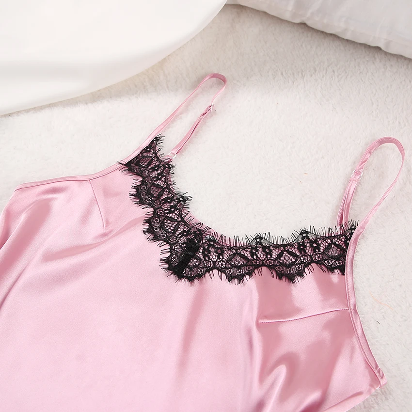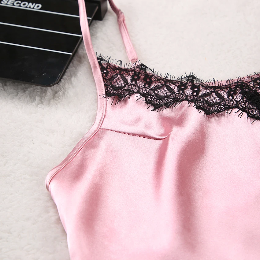 OOTN Nightwear Sleeveless Tops+Shorts 2 Pcs Sets Pyjama Sets For Women Pijama Women's Sleepwear Sexy Lace Satin Pajama Sets