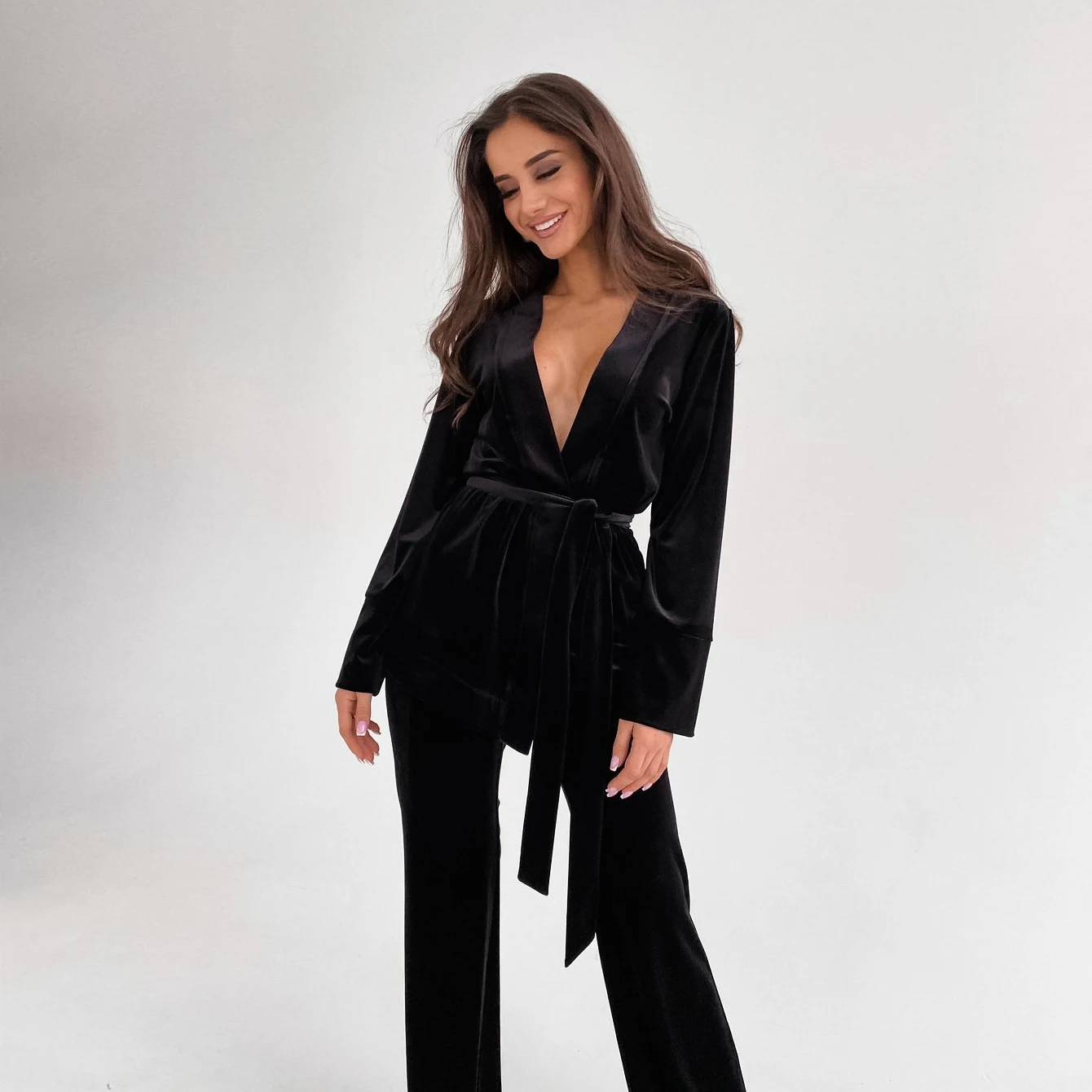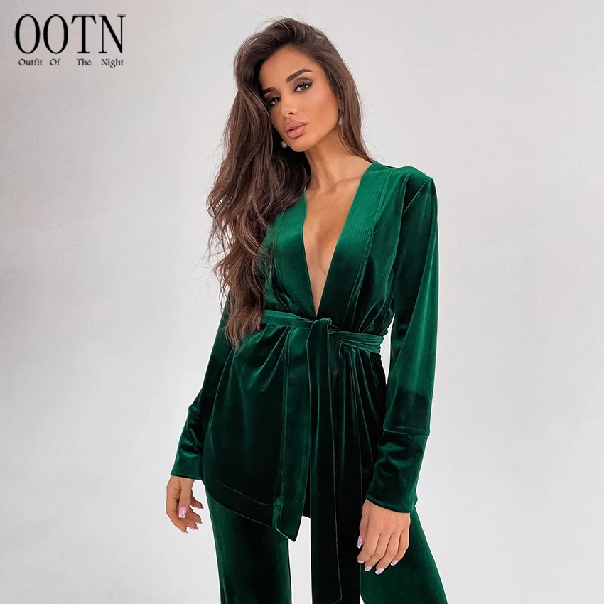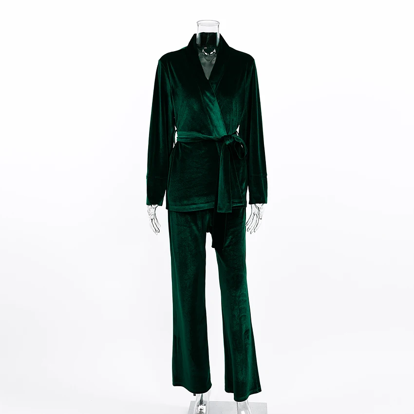 OOTN Nightwear Warm Robes Set Woman 2 Pieces Solid Color Trouser Suits Velvet Bathrobe Women Velour Women's Nightgown Robe Sets