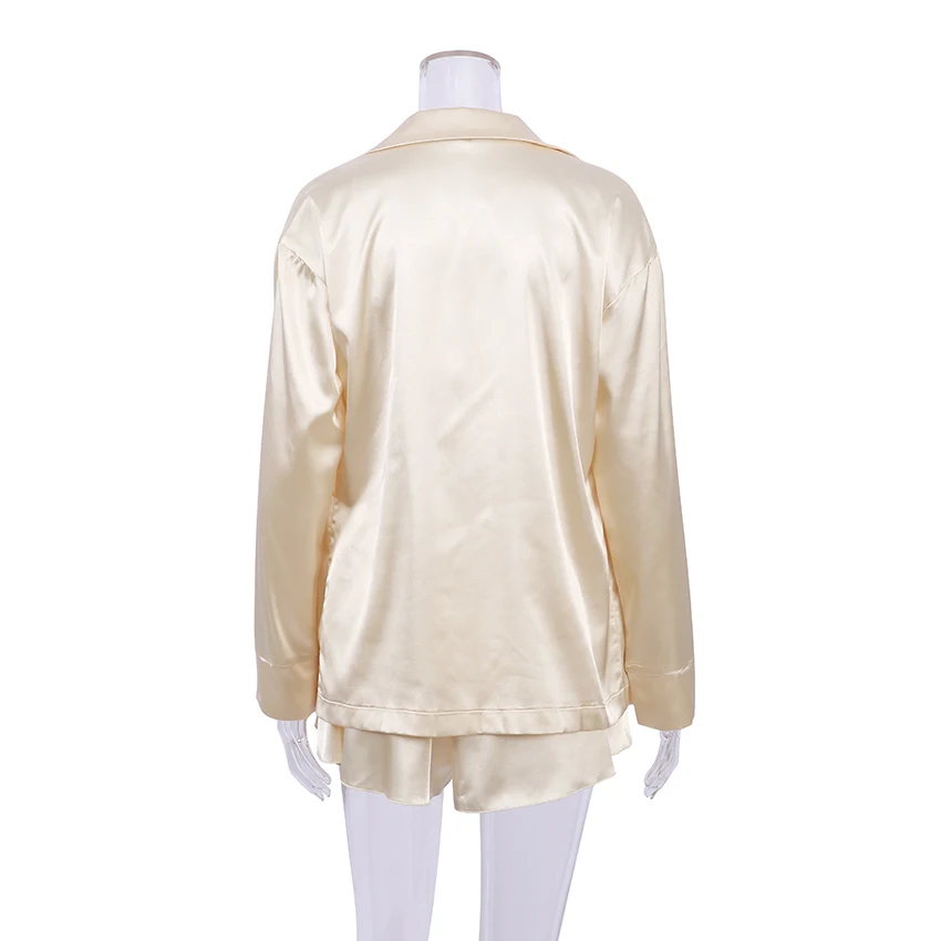 OOTN Sexy Shorts Pijama Robes Women Pajama Sets Nightgowns Woman 3 Pieces Ruched Robe Women's Pajamas Champagne Bathrobes Set