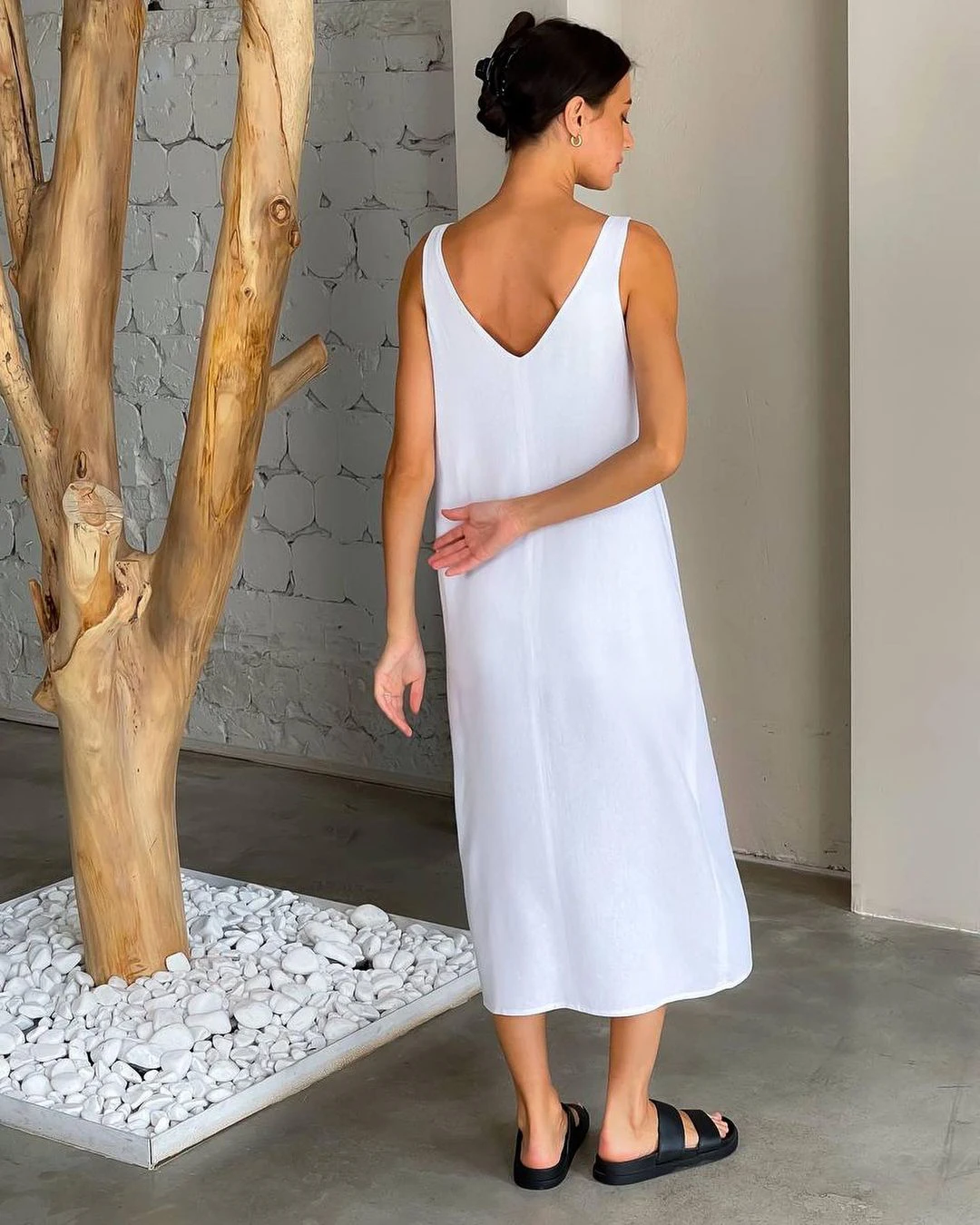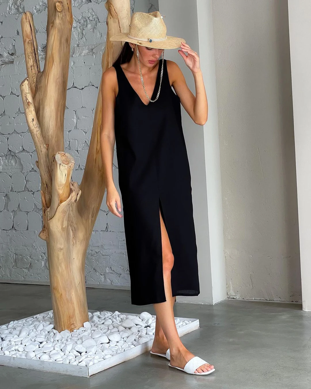 OOTN Split Solid Female Nightwear Cotton 2023 Spring Woman Dresses Women Loose V Neck Sleeveless Sleepwear Casual Night Dress