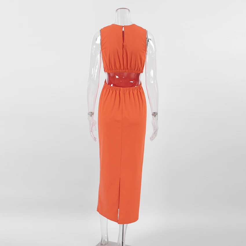 OOTN Women Cotton Linen Pencil Dresses 2023 Summer Sleeveless Hollow Out Dresses Elegant High Waist O Neck Long other dresses