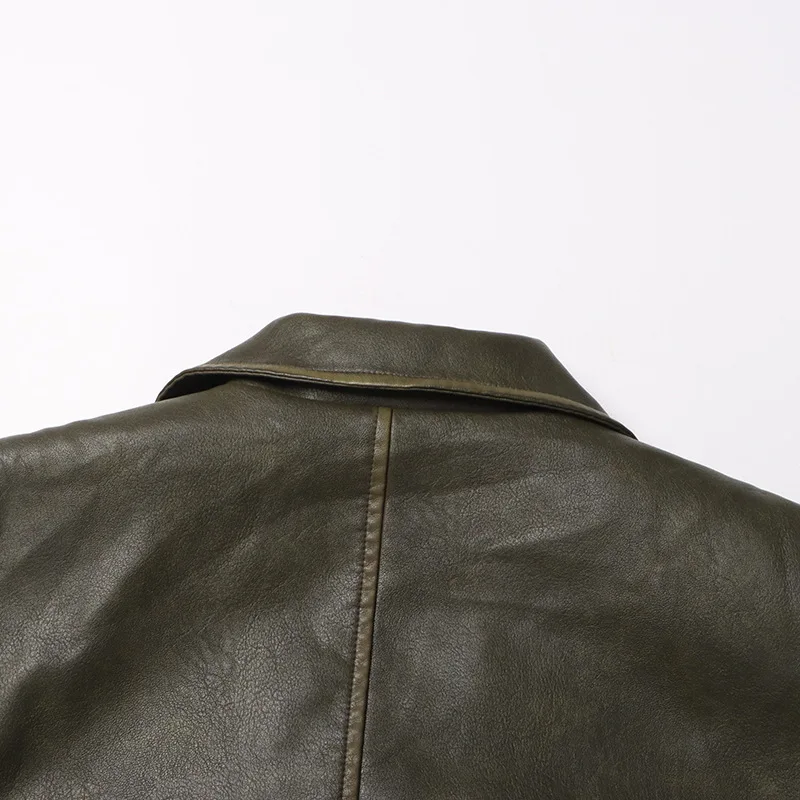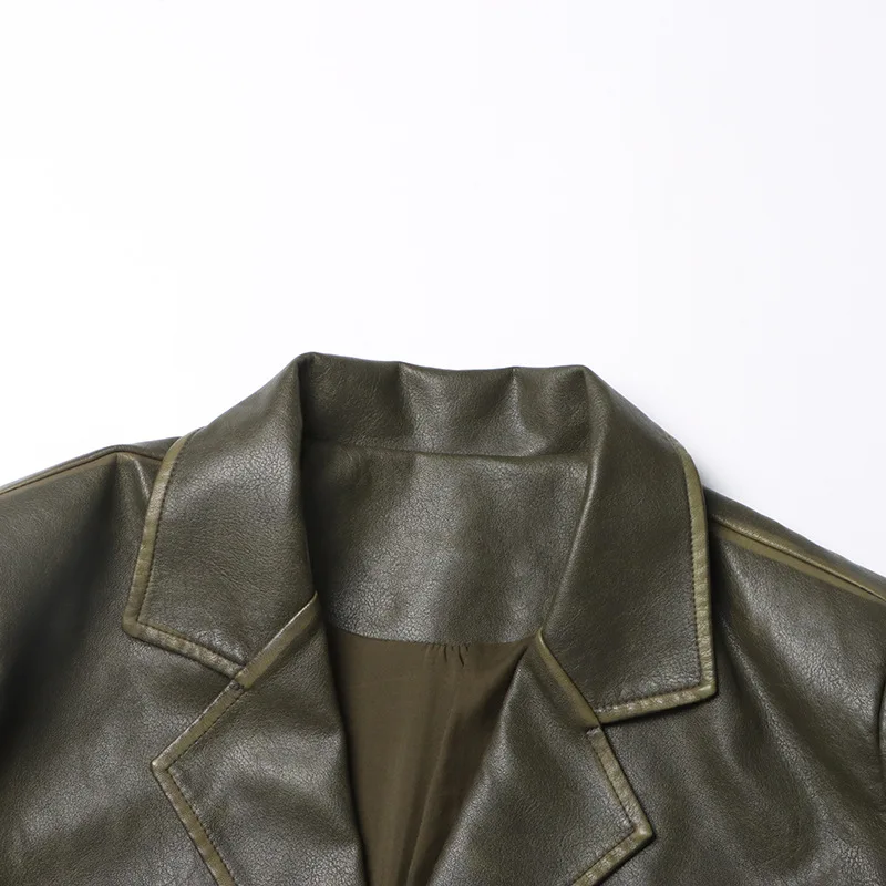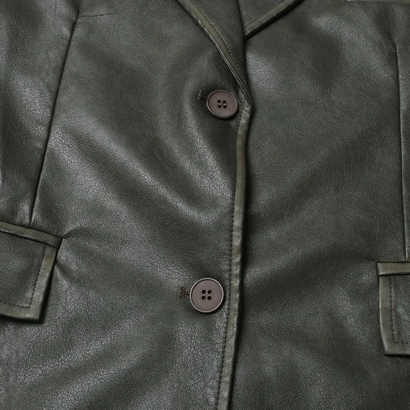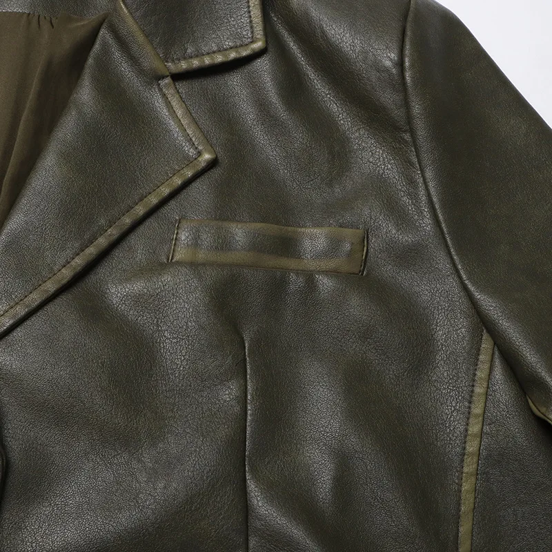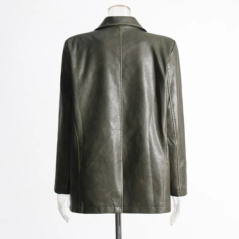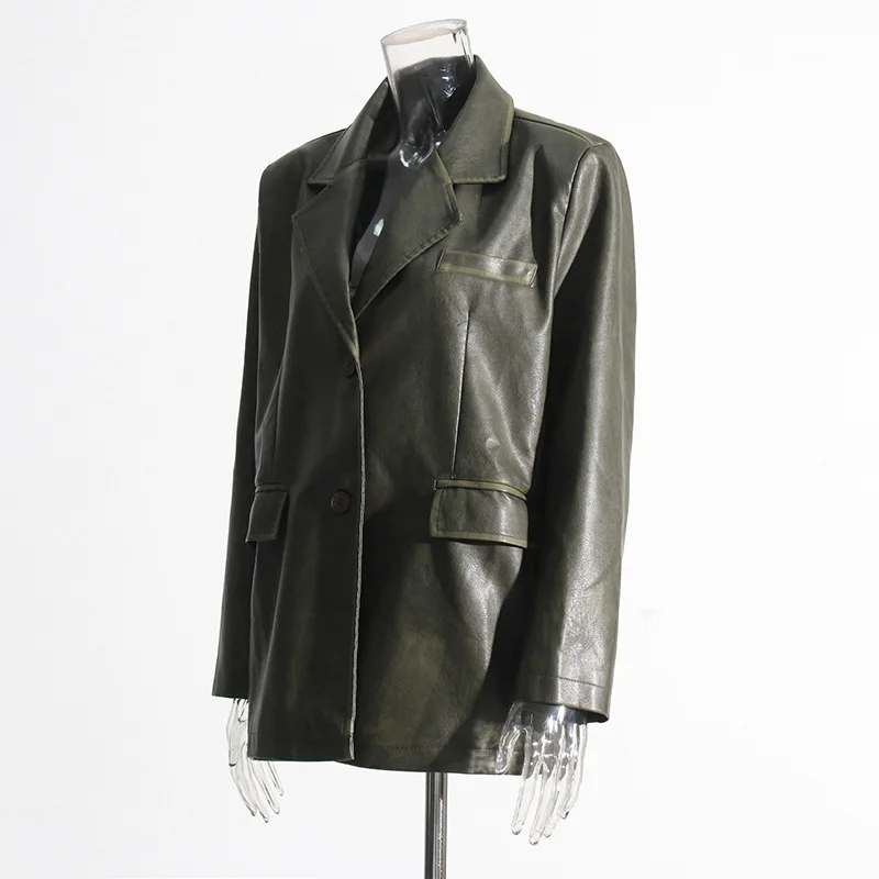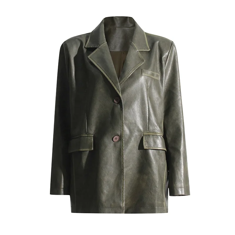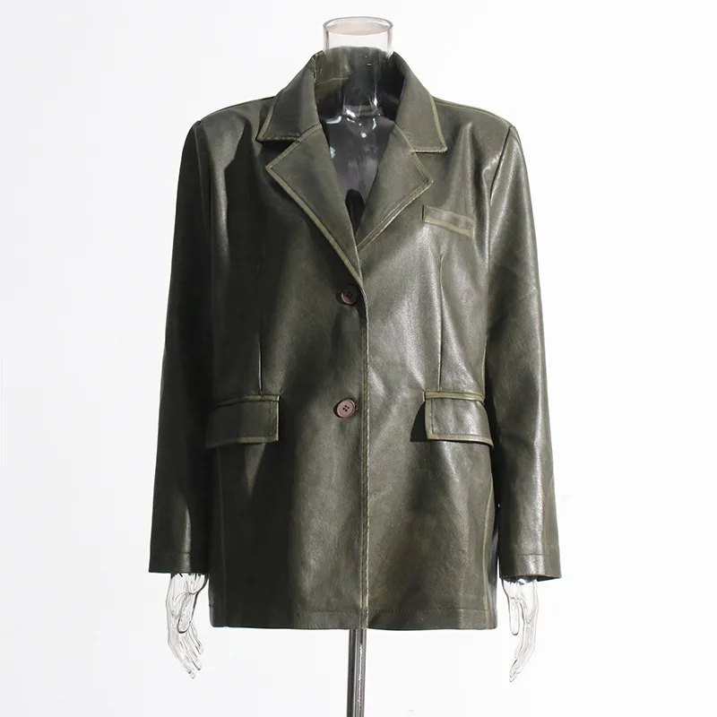 OUDINA 2023 Autumn New fashion Suit Jackets Solid Color Loose Versatile Heavy Industry PU Leather Blazer For Women