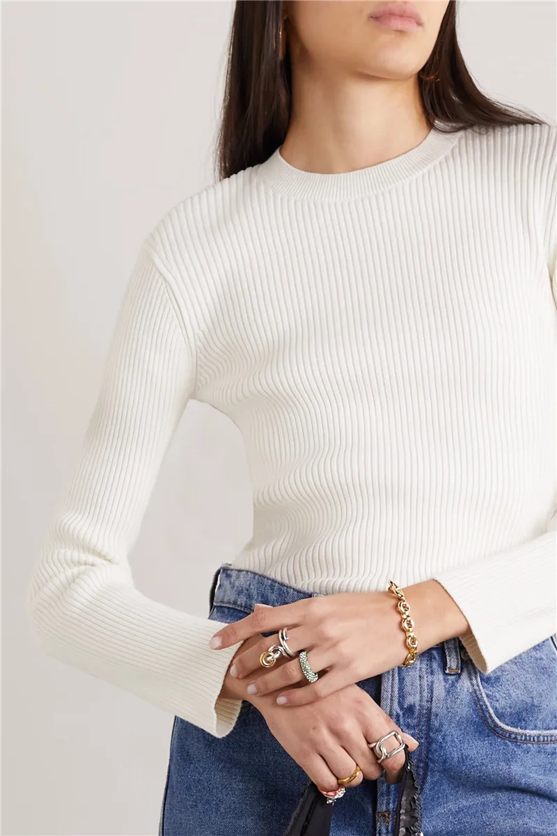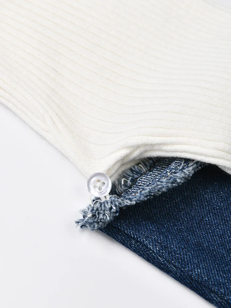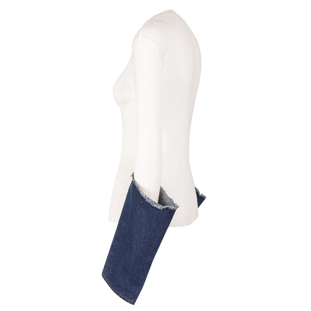 OUDINA 2023 New Arrivals Women Patchwork Detachable Denim Cuffs Casual Top Sweater Knit Women's Sweaters