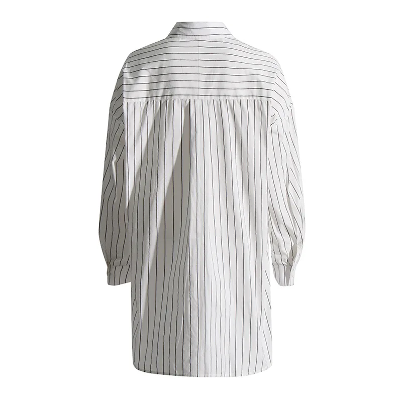 OUDINA 2023 New Commuting Striped LooseLlong Shirt Women Fashion Long-Sleeved Midi Oversized Shirt