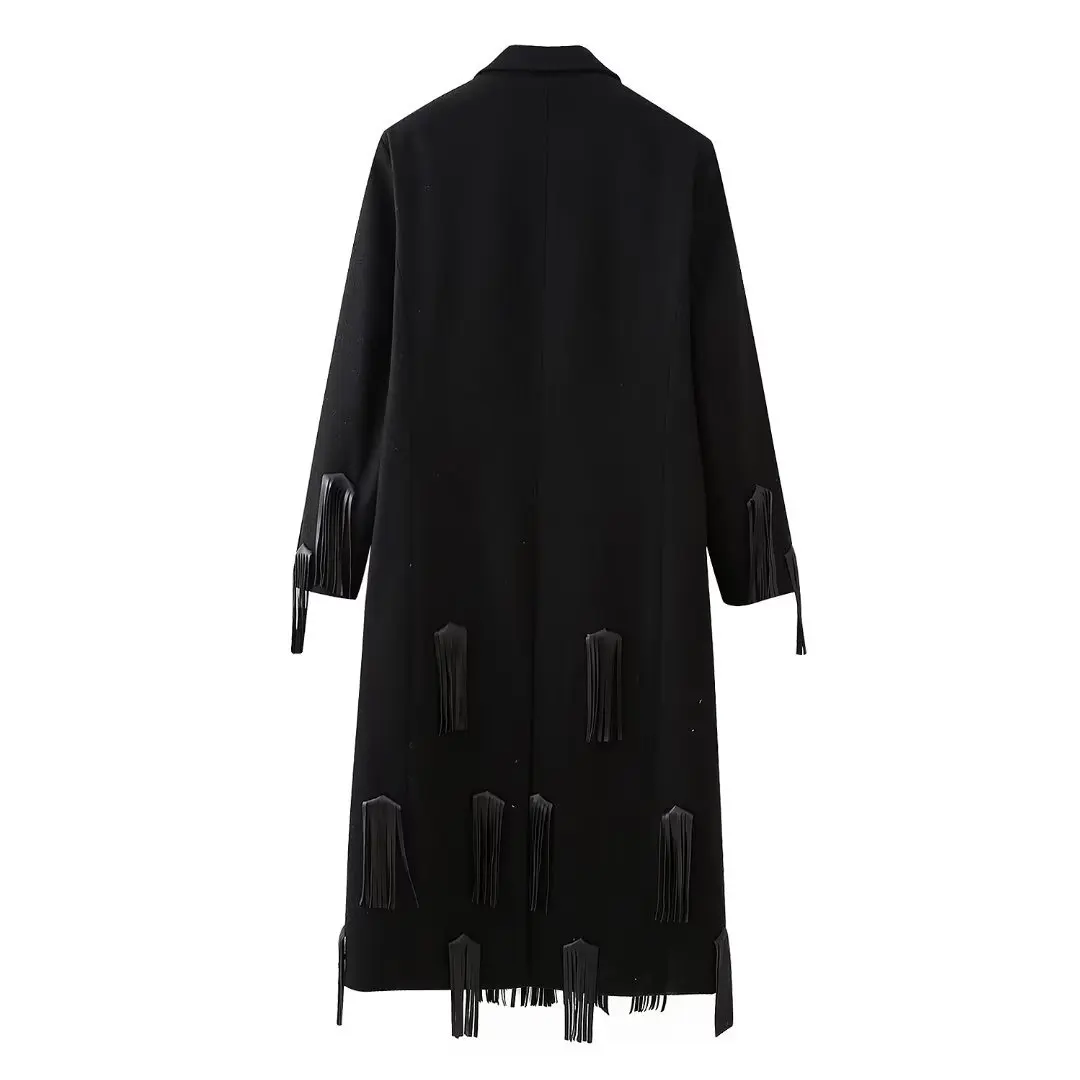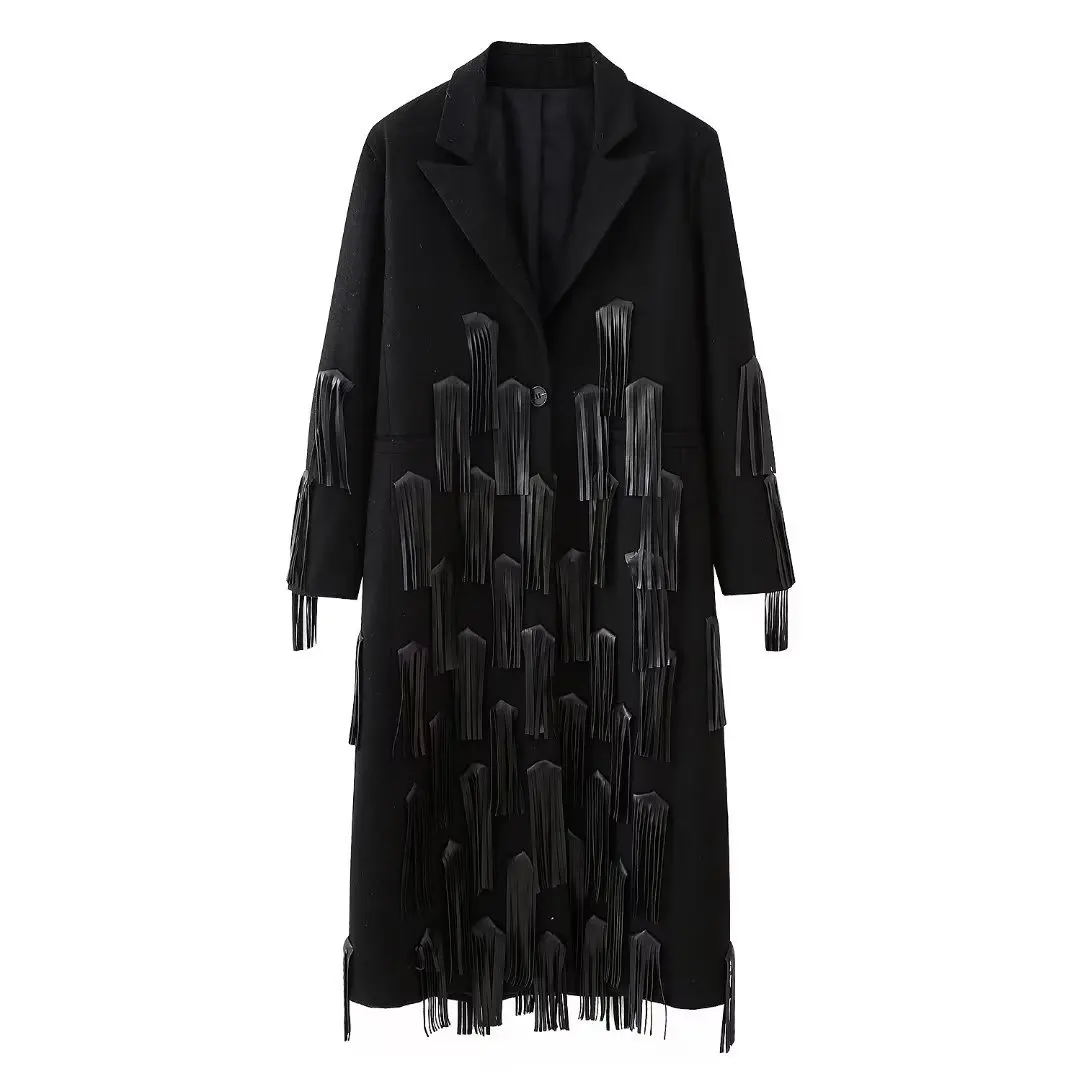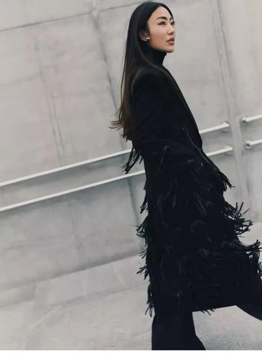 OUDINA 2024 Fashion Luxury Blazer Velvet Jackets Tassel Long Blazer Windbreaker Jacket Women