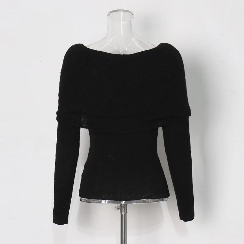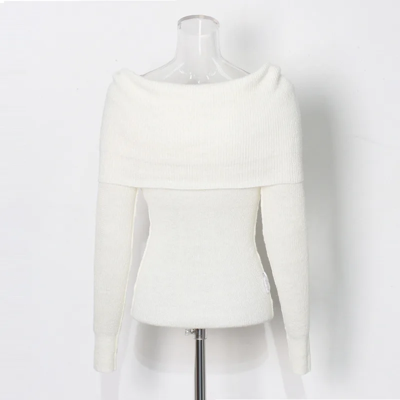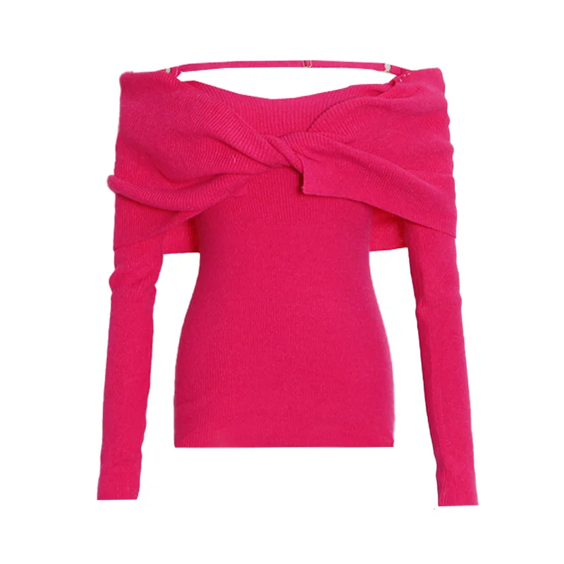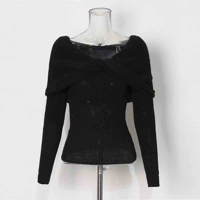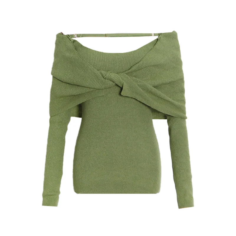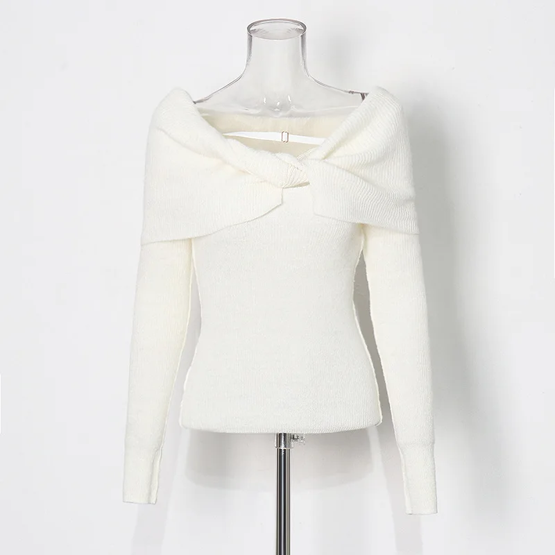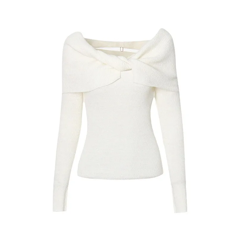 OUDINA 2024 New Elegant Knitted Top Twist Slimming Solid Color Long-sleeved One Shoulder Tops For Women