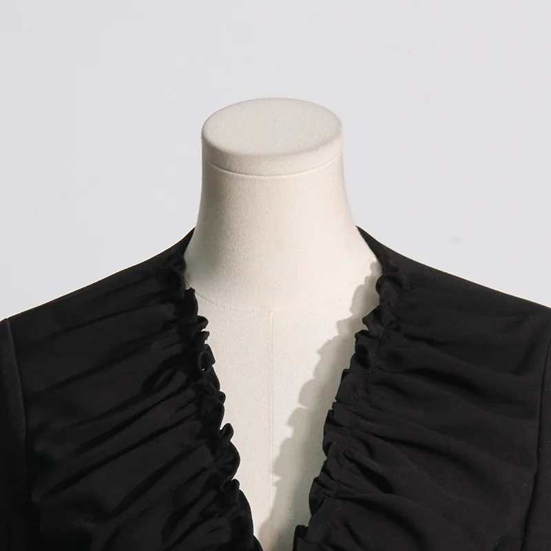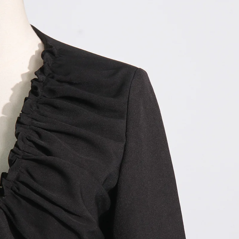 OUDINA 2024 New Style Pleated Blazers Ladies Women V-neck Waist Long Sleeve Temperament Casual Blazer De Mujer