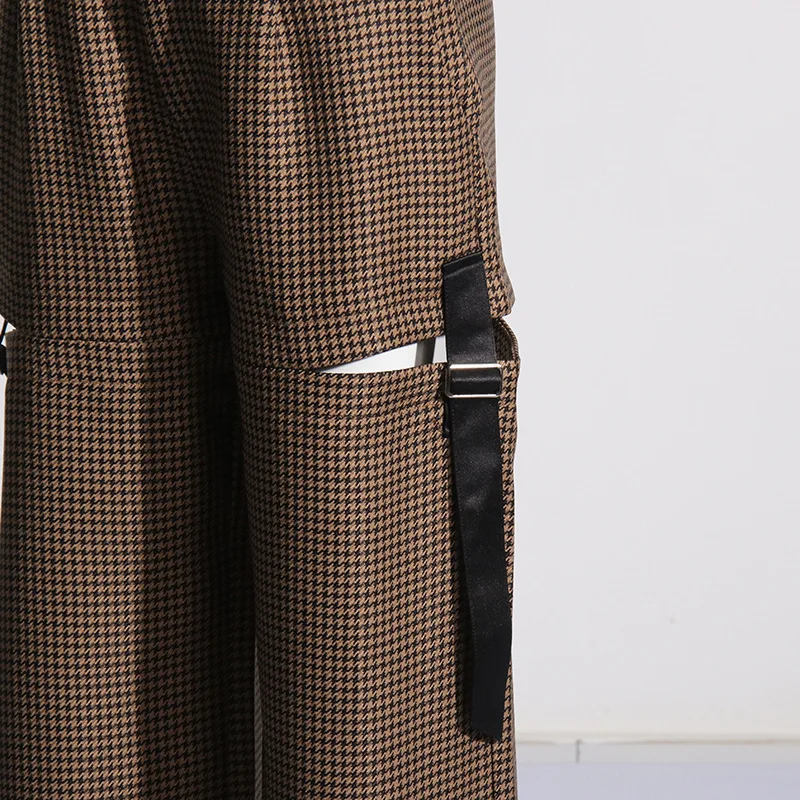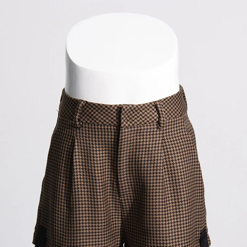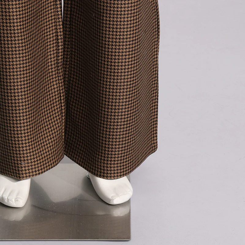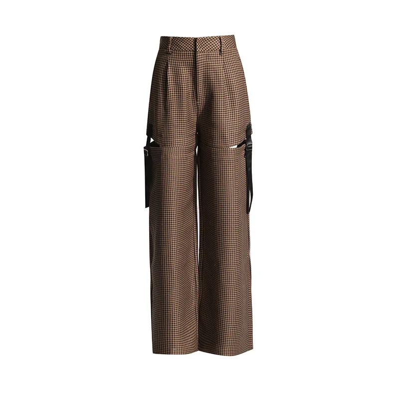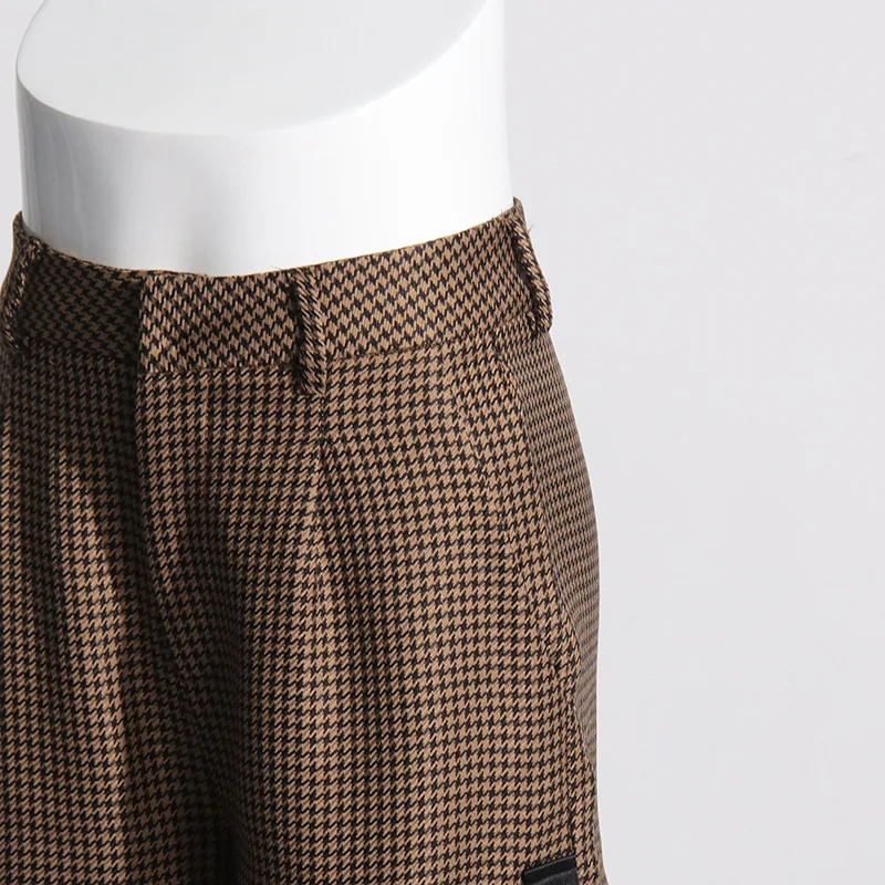 OUDINA 2024 Spring New French Retro Women's Straight Hollow Lace Design High Waist Slim Casual Plaid Woman Pants
