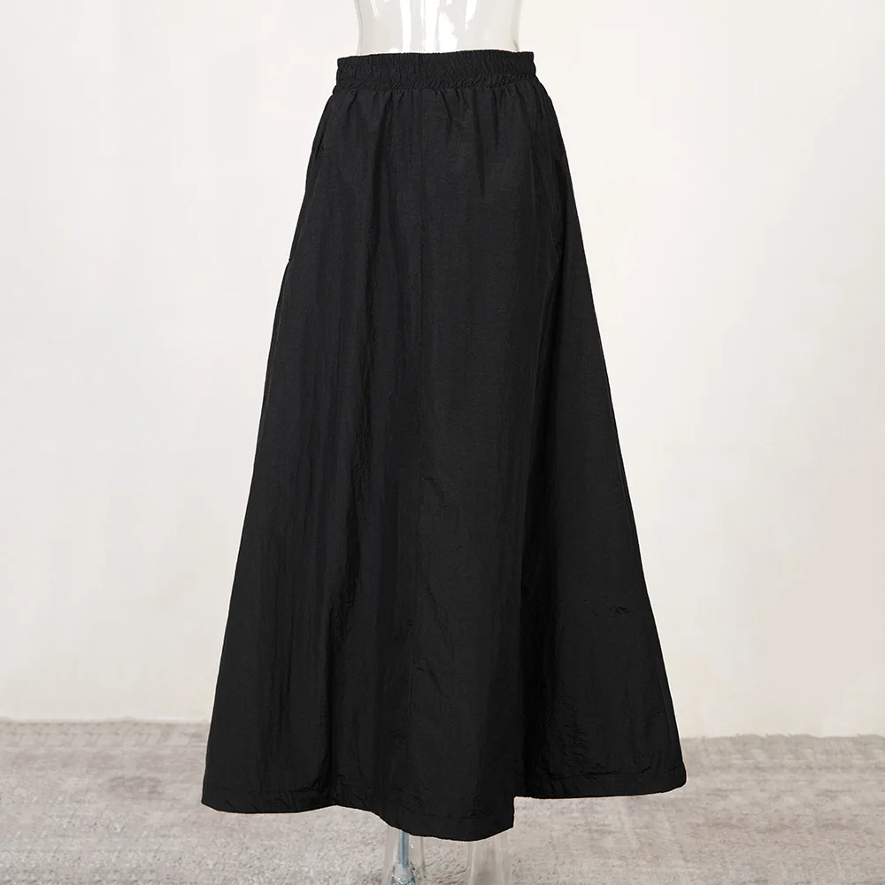 OUDINA Custom High Quality Skirt High Waist A-line Casual Black Elastic Waist Solid Summer Women's Skirts