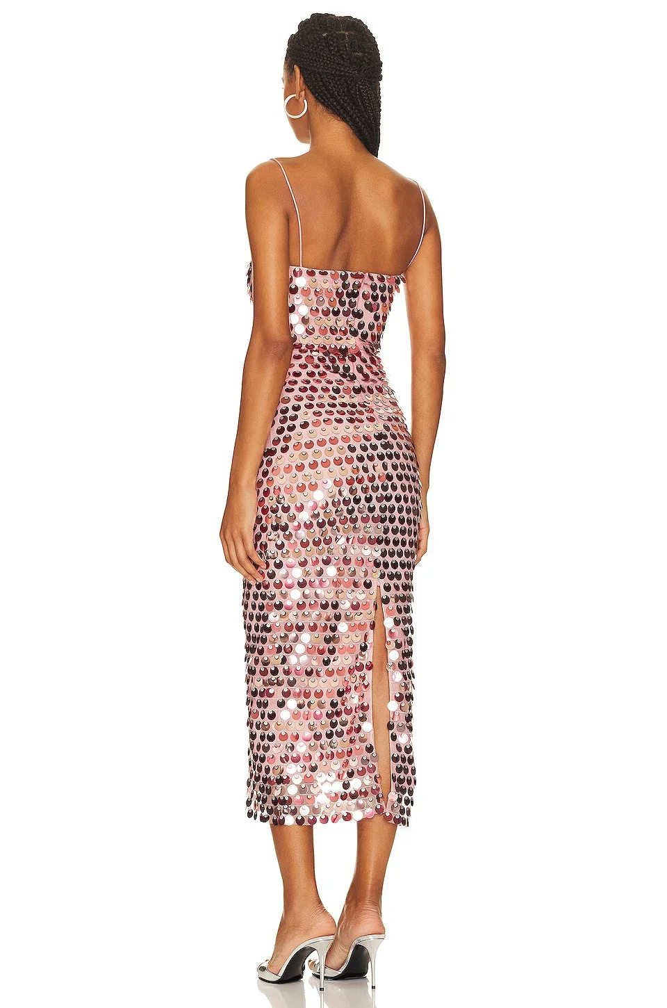 OUDINA European Fashionable Banquet Luxury Suspender Slit Dress Women Evening Elegant Long Party Dresses