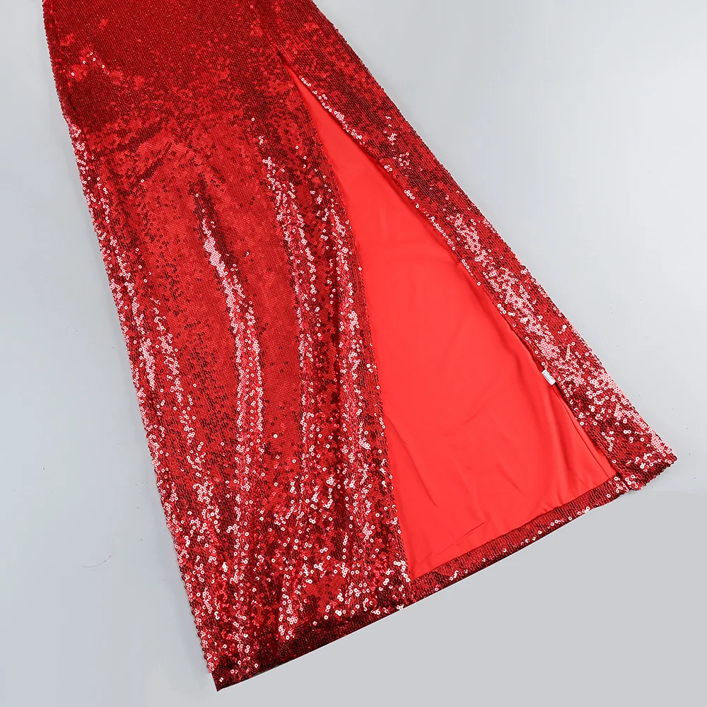 OUDINA Fashion Elegant Luxury Long Sleeve Shirt Top Sequined Women Two Piece Skirt Set