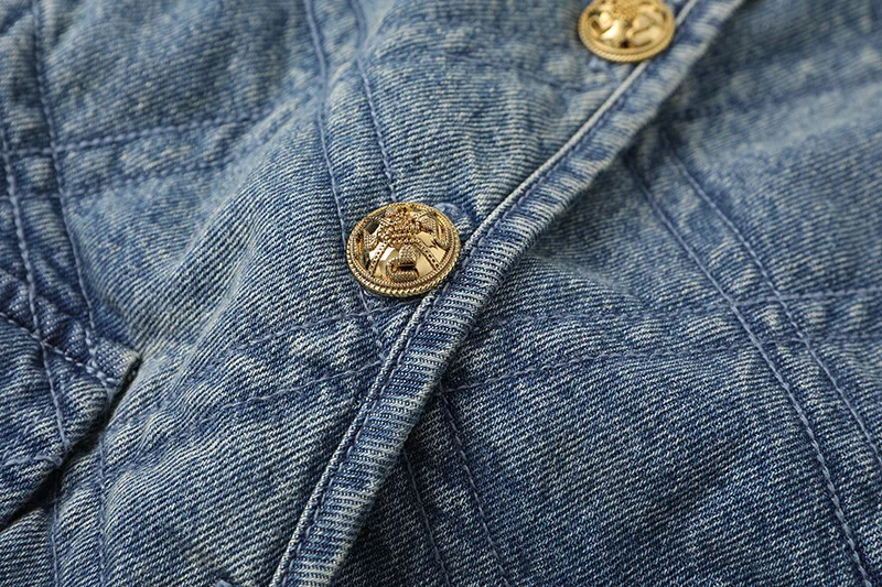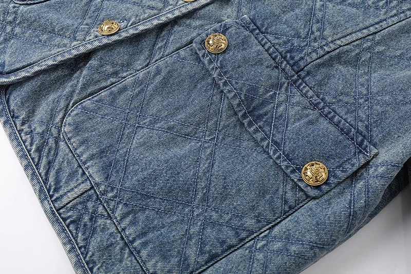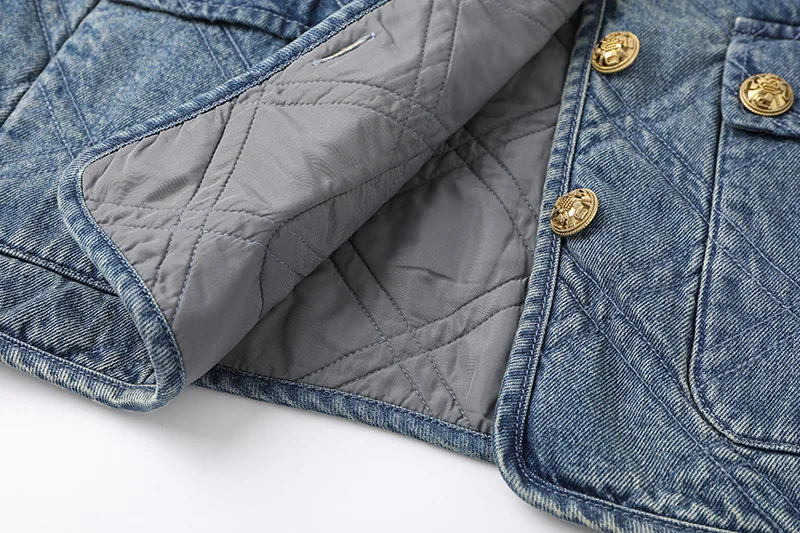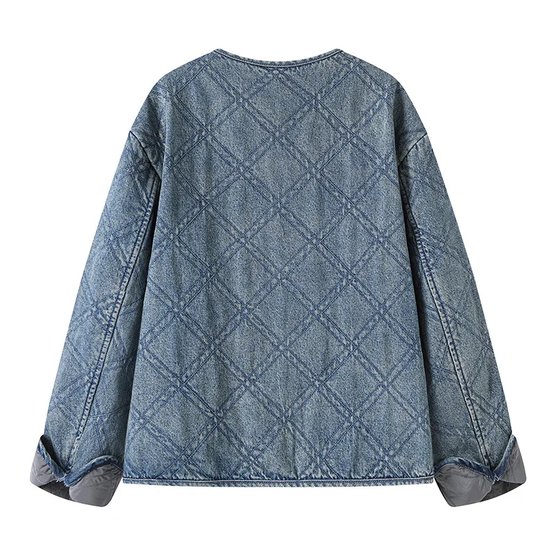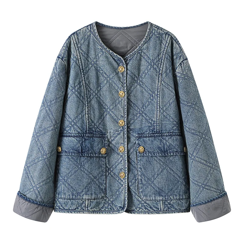 OUDINA Fashion Hot Products Plaid Round Neck Loose Retro Denim Cotton Jacket Winter Fur Women's Coats