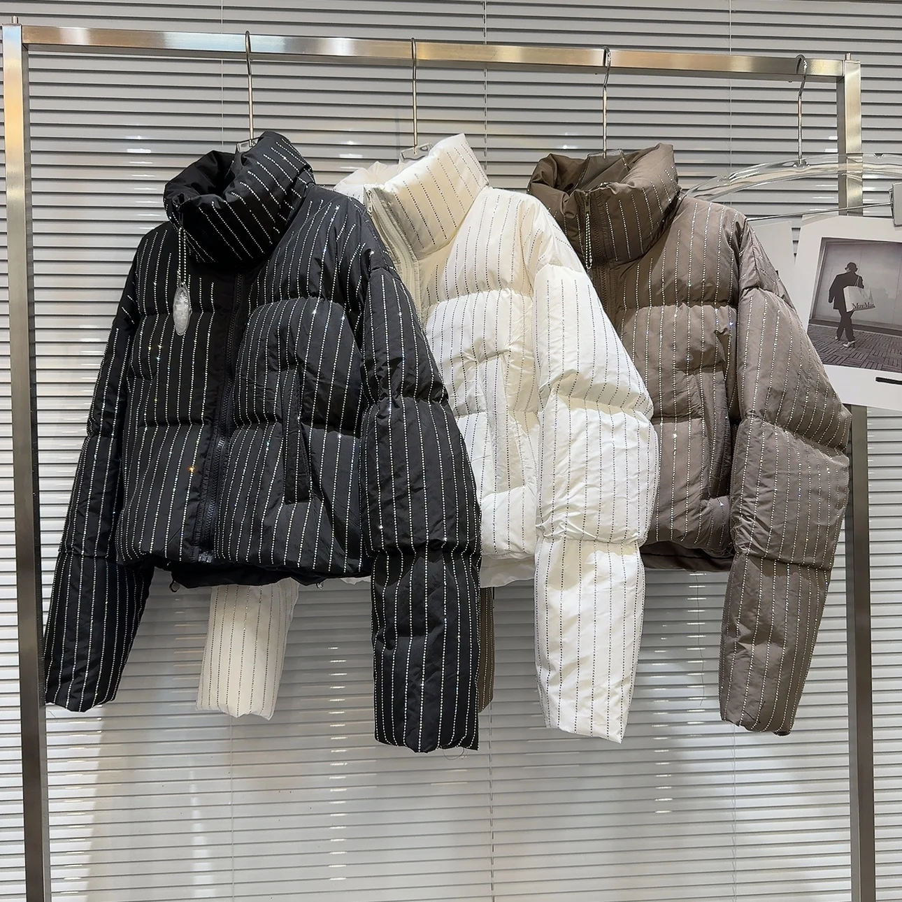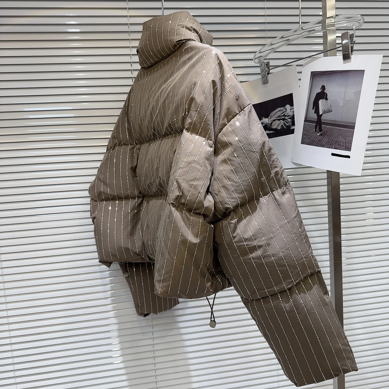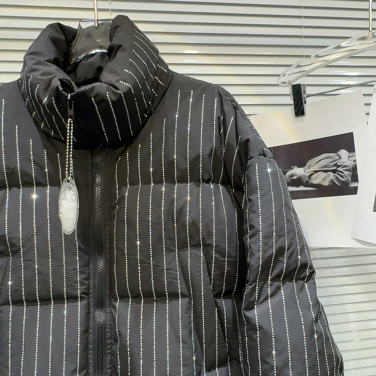 OUDINA Fashion Strip Hot Sequin Coats Rhinestones Diamond Pattern Warm Bubble Down Jacket Winter Puffy Bomber Women's Coats