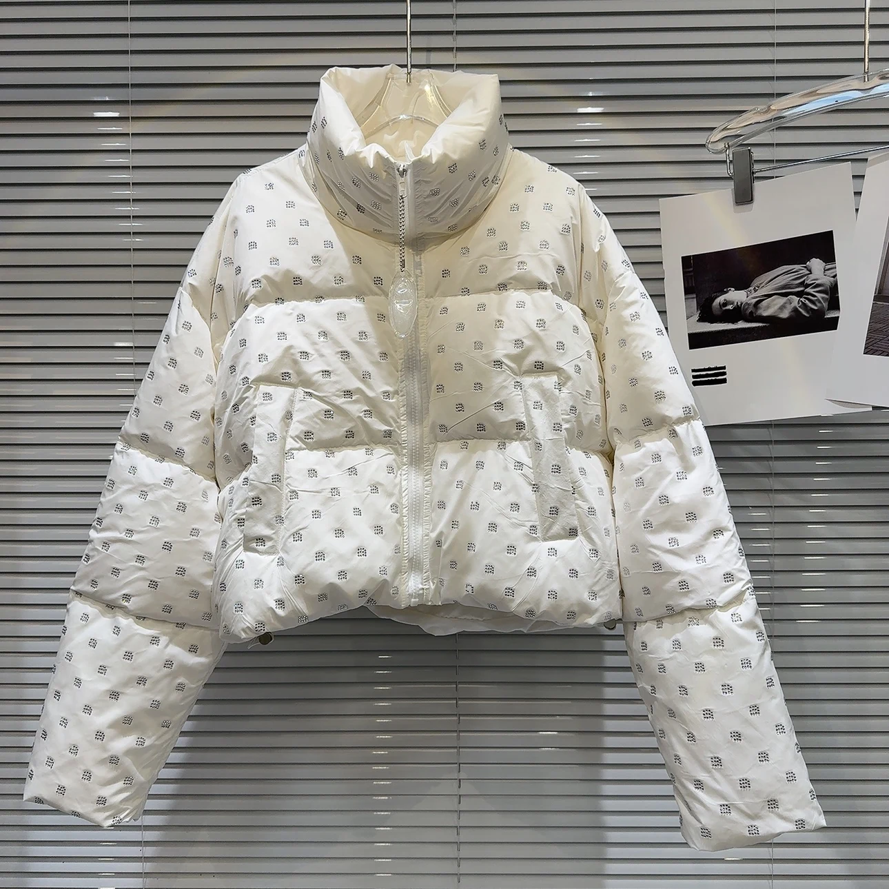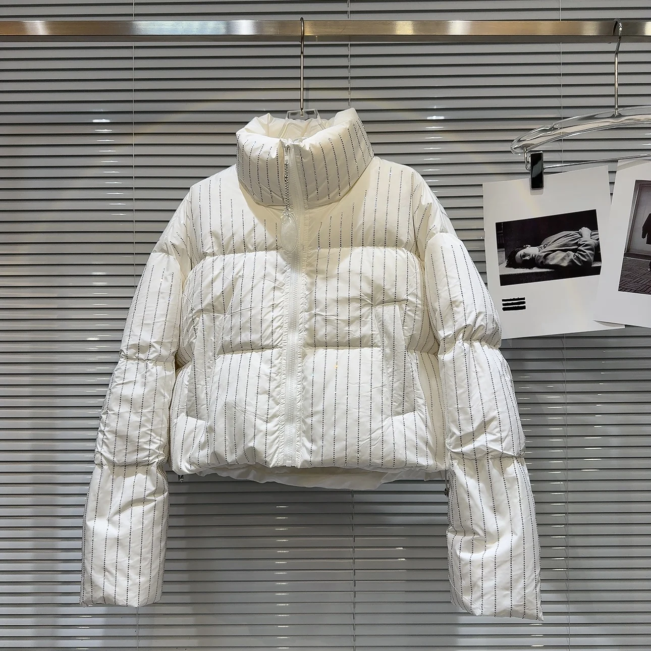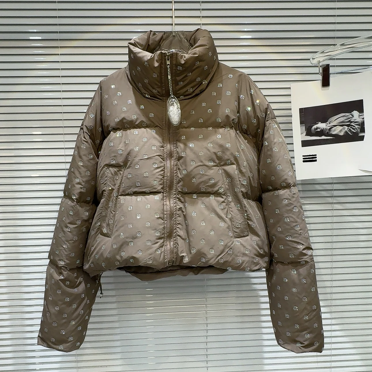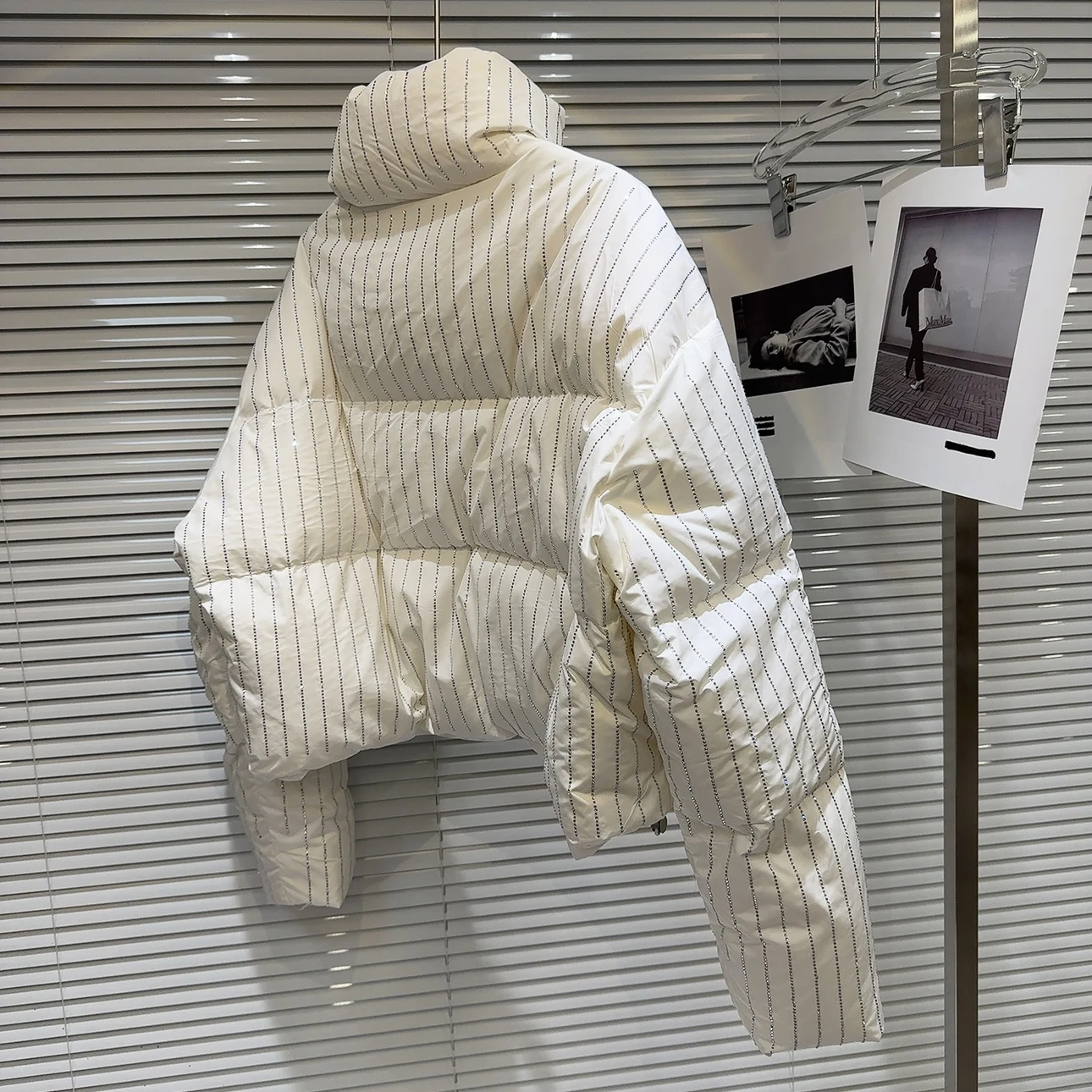 OUDINA Fashion Strip Hot Sequin Coats Rhinestones Diamond Pattern Warm Bubble Down Jacket Winter Puffy Bomber Women's Coats