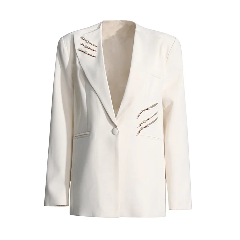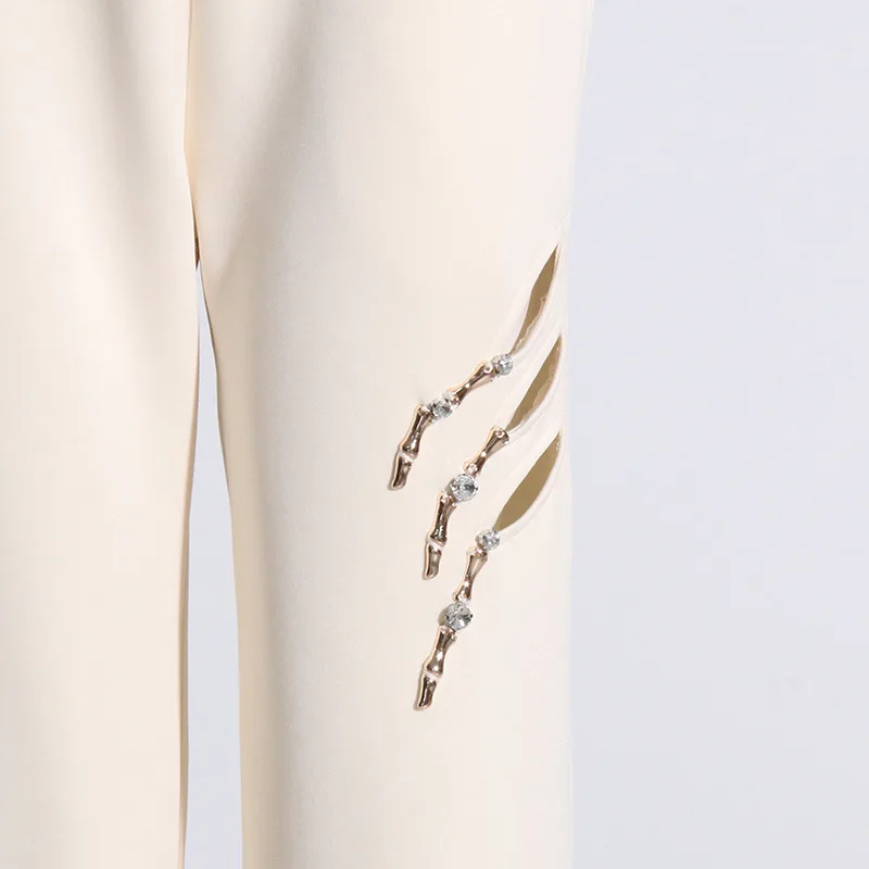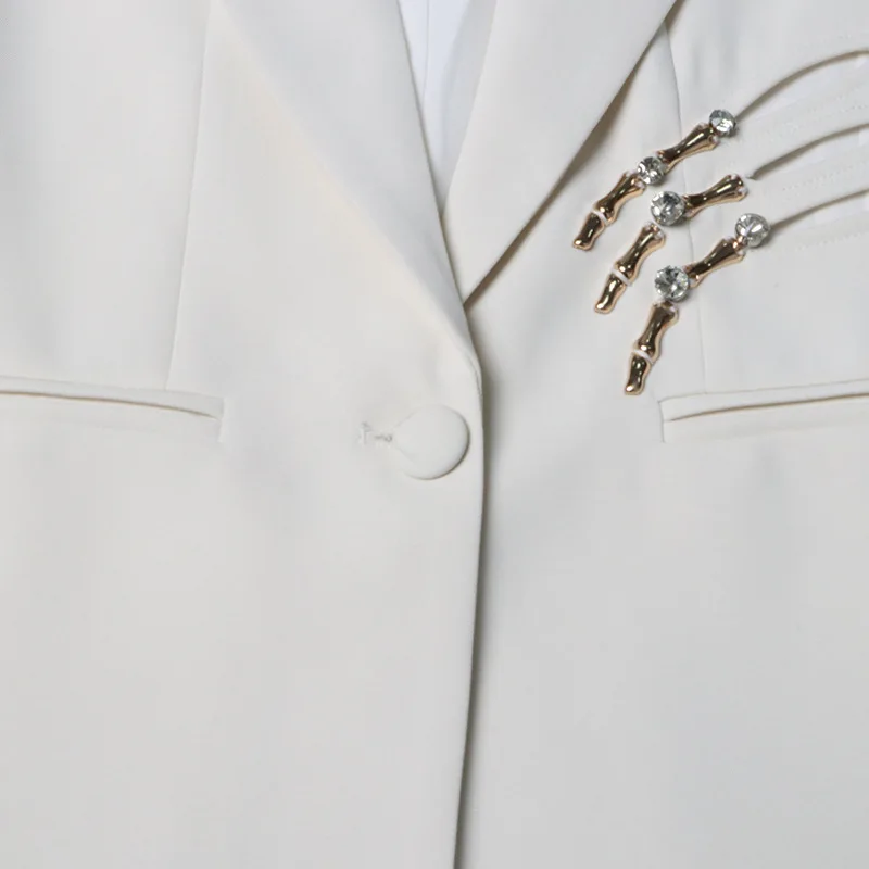 OUDINA Fashion Suits And Tuxedo For Women Diamond Wide Leg Pants Sweatpants Suit Blazer Jacket Two Piece Pants Sets Women's Suit