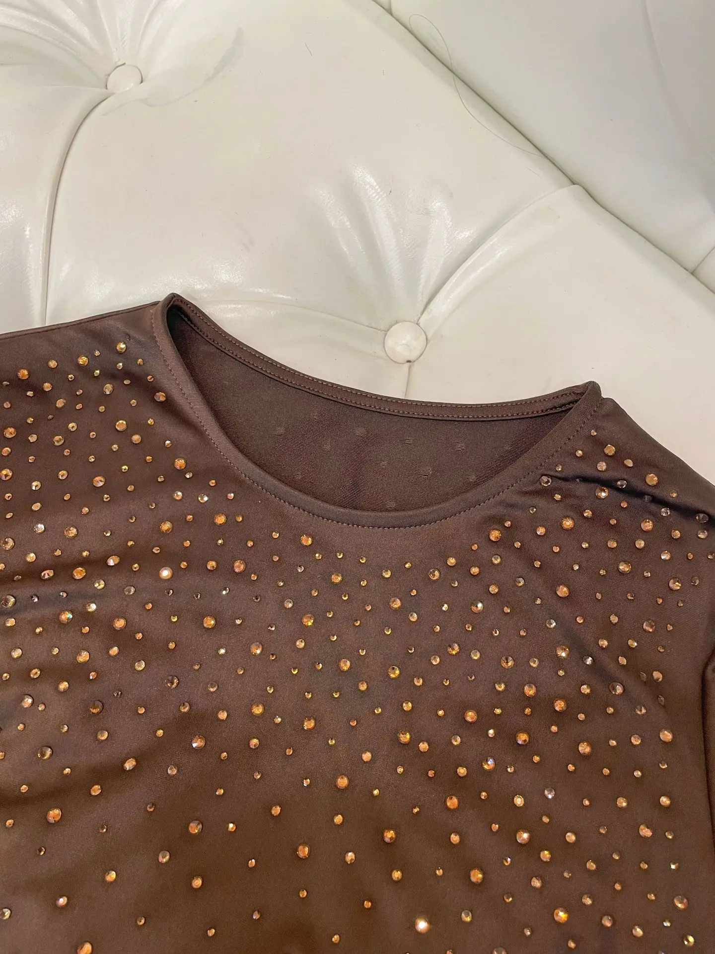 OUDINA Fashion T-shirt Crop Top Long Sleeve Tight Diamond Rhinestones Jumpsuit Sequins Jumpsuits, Playsuits & Bodysuits