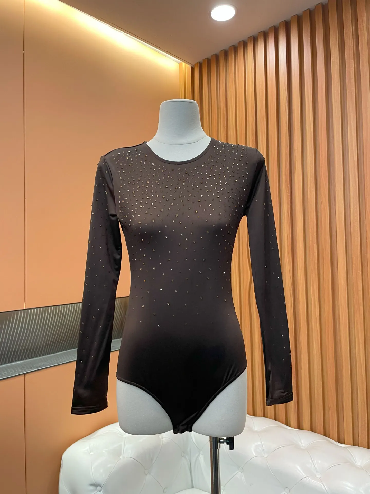 OUDINA Fashion T-shirt Crop Top Long Sleeve Tight Diamond Rhinestones Jumpsuit Sequins Jumpsuits Playsuits & Bodysuits
