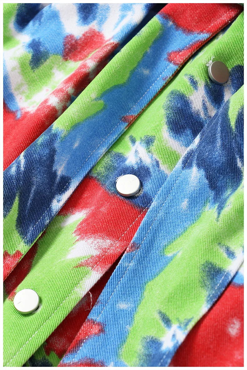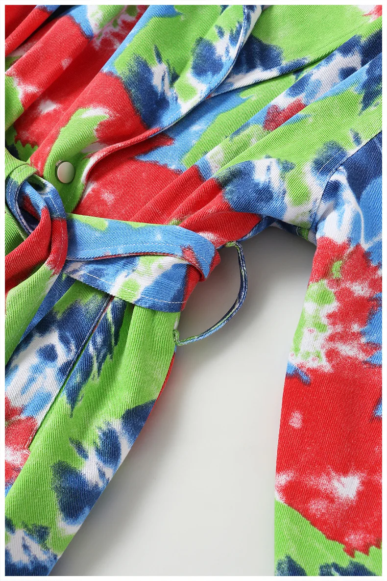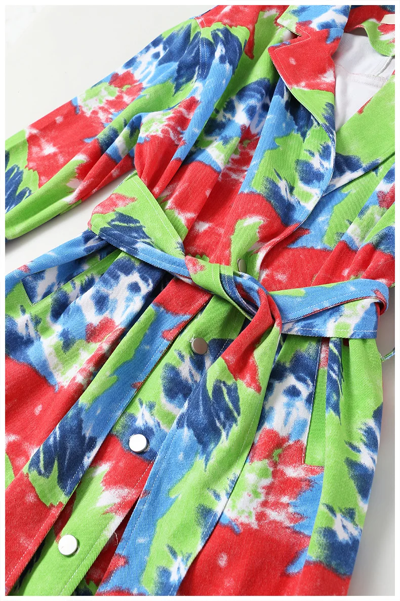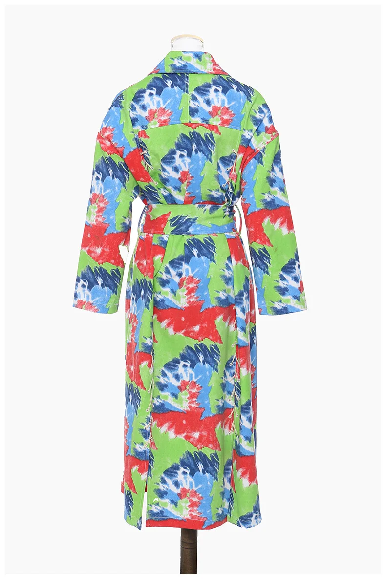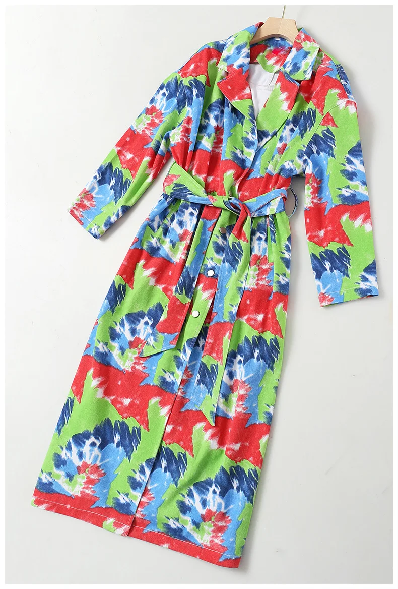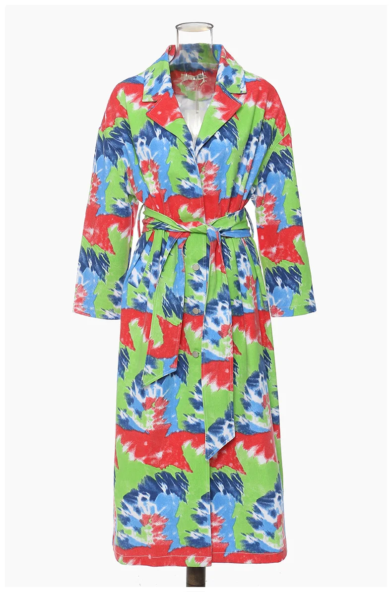 OUDINA Fashionable Vintage Graffiti Print Denim Jacket Windbreaker Trench Coats Womens Long Jacket