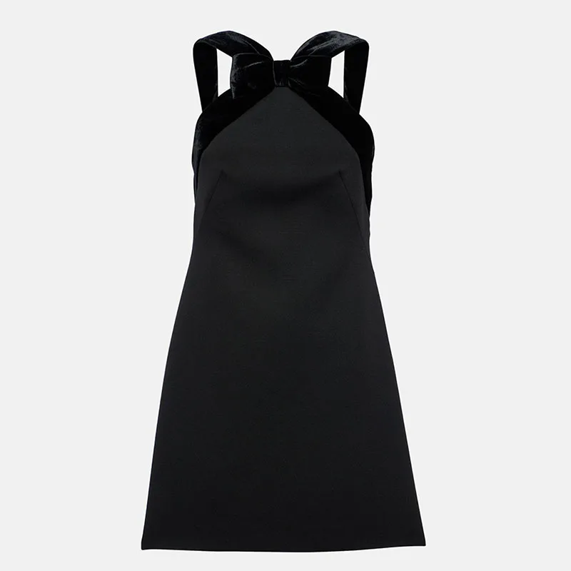 OUDINA French Elegant Retro Bow Velvet Dresses Stitching Large Backless Design New Summer Vest Ladies Dress