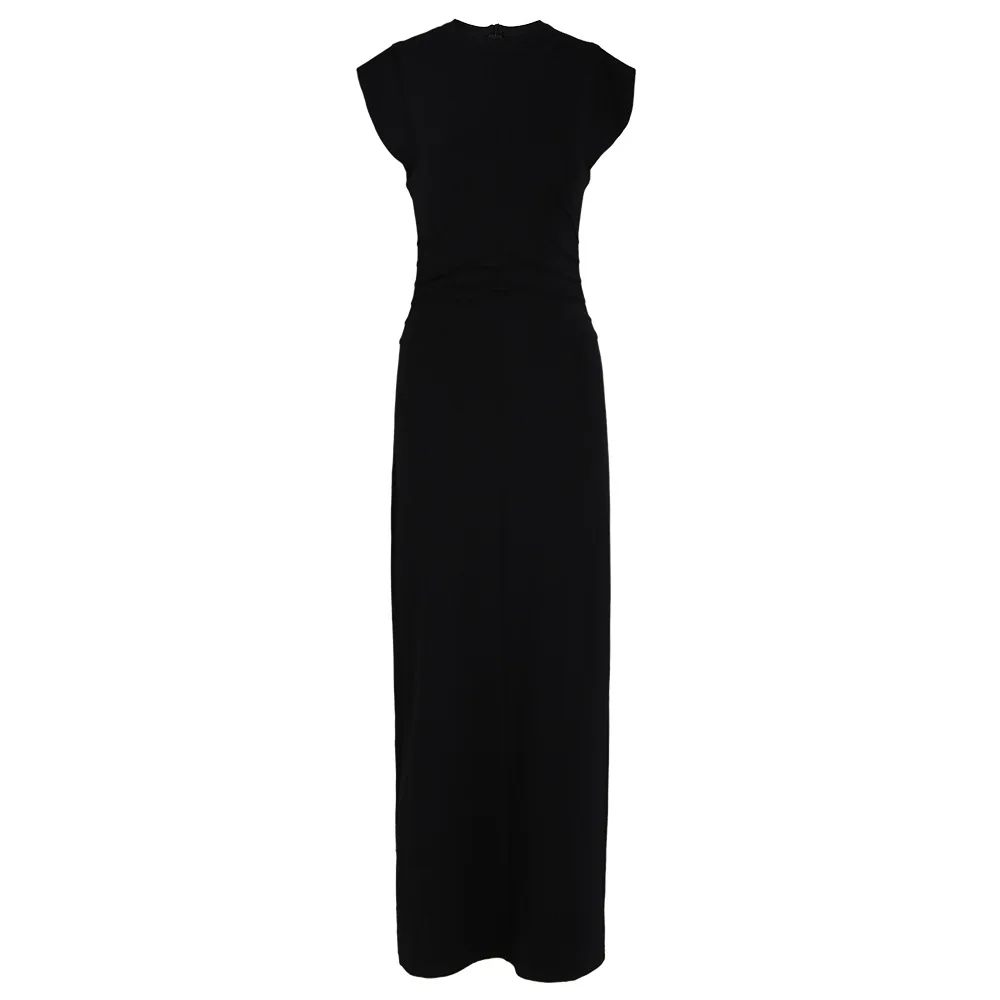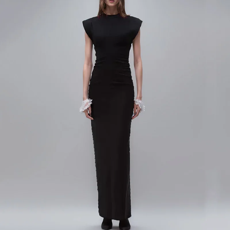 OUDINA French Pleated Knit Dress Spring New Lady Elegant Sleeveless Waist Slimming Long Dresses Women