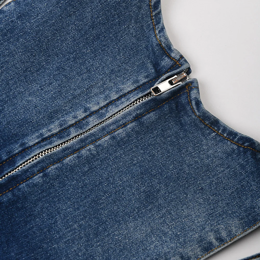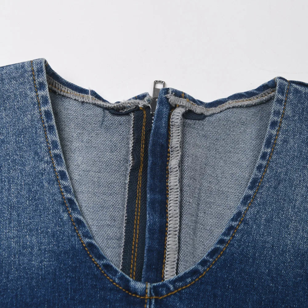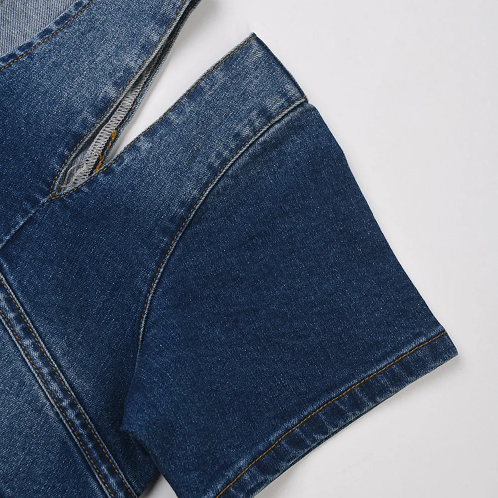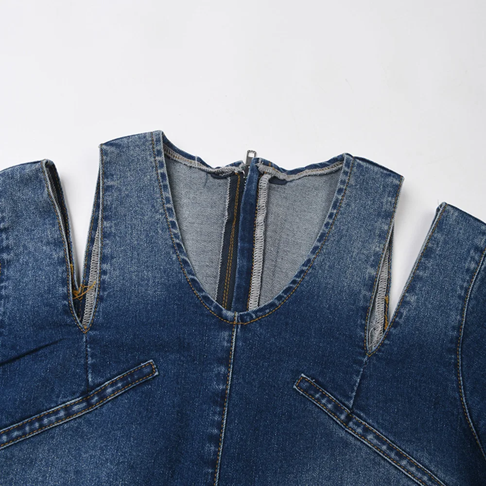 OUDINA French Style Short Sleeve Denim Long Dress For Women New Off-shoulder Versatile Mid-length Hem Casual Dresses