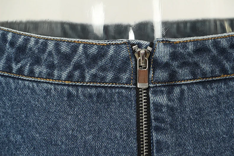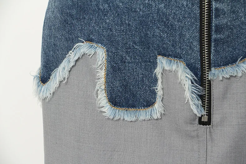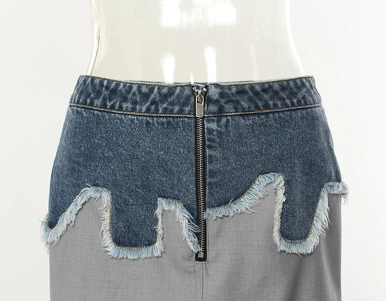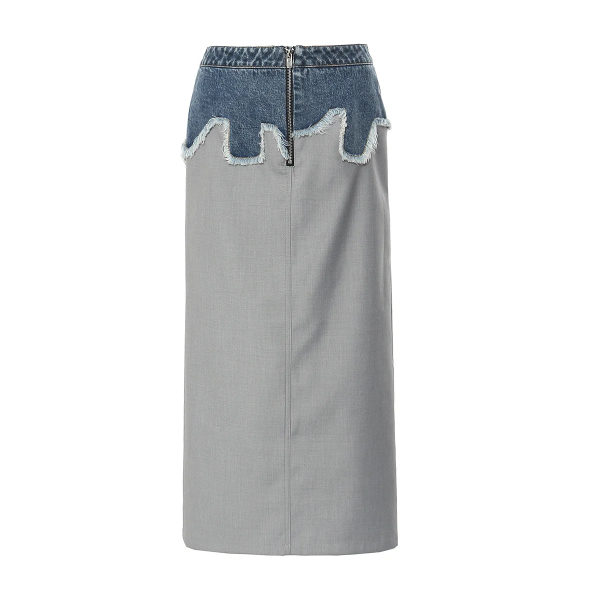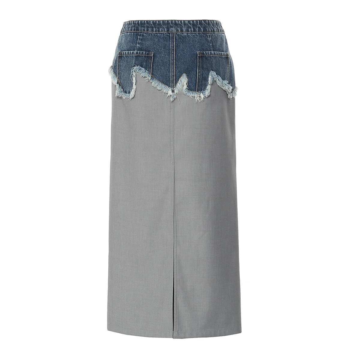 OUDINA High Waist Gray Zipper Patchwork Denim Pencil Straight Skirt Female Cargo Long Skirts For Women