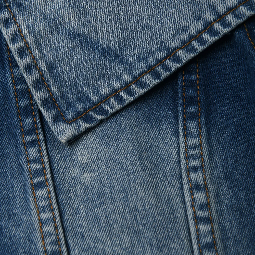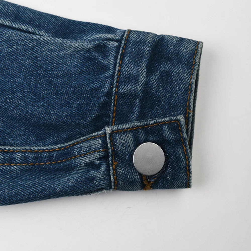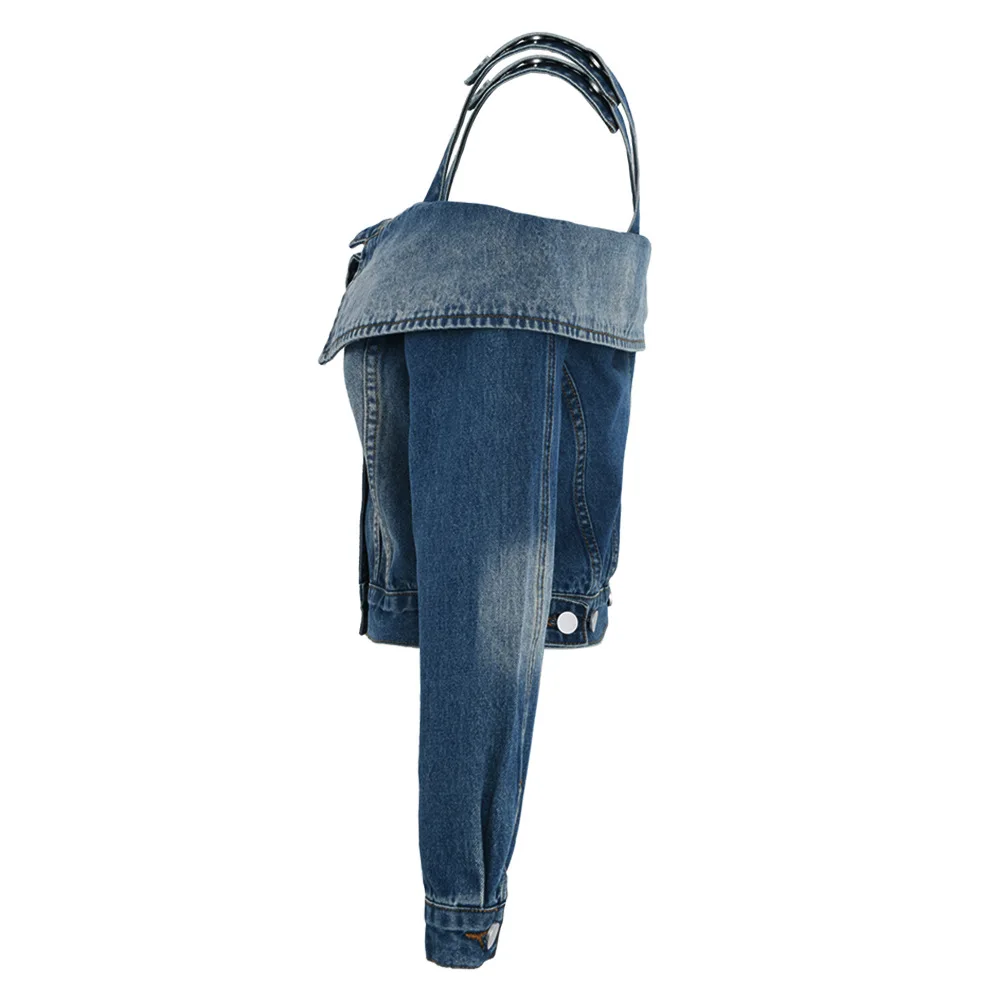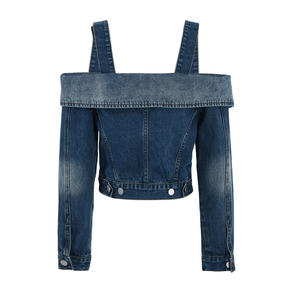 OUDINA Hong Kong Style Retro One-shoulder Crop Top Denim Jean Jacket For Women New Off Shoulder Denim Top