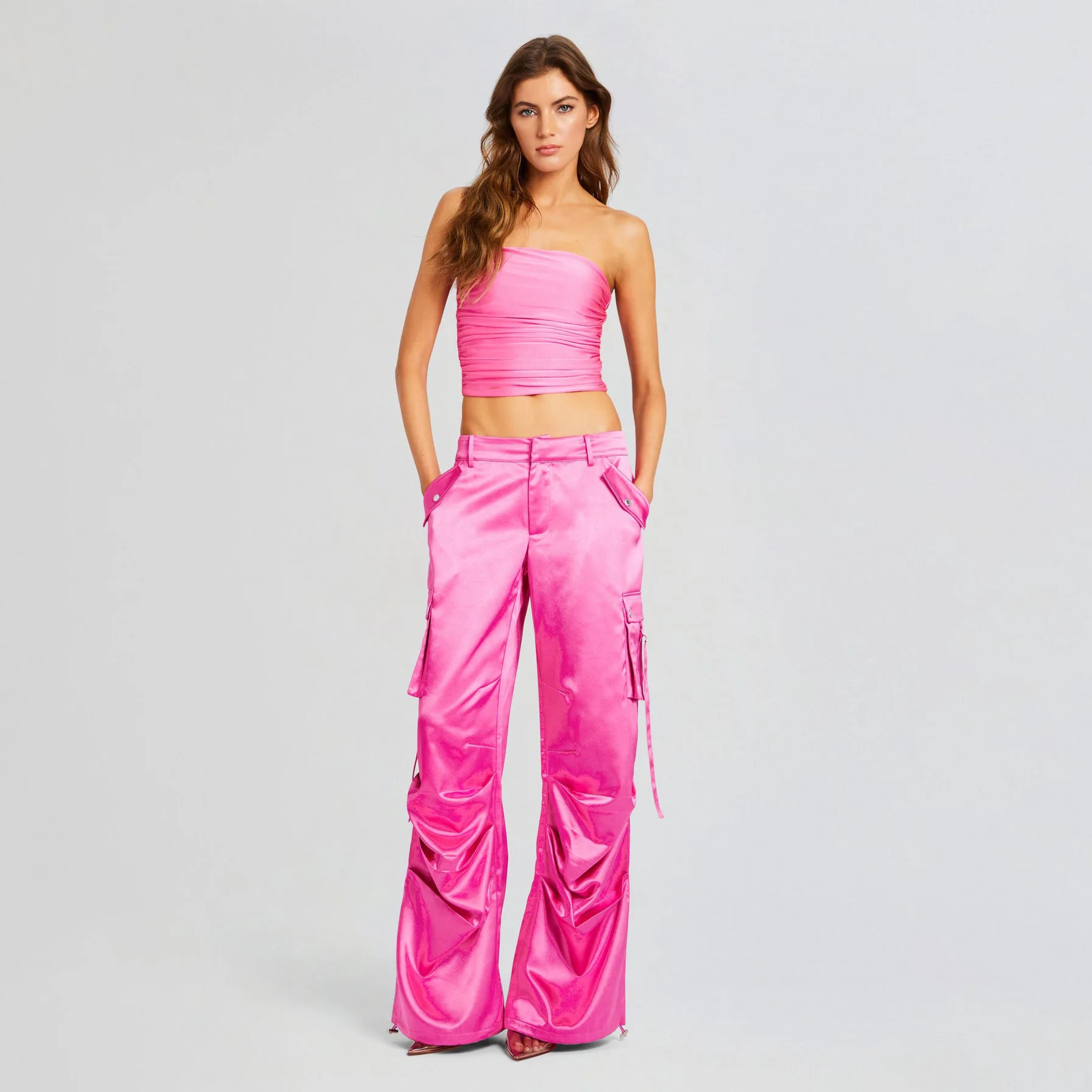 OUDINA Hot Sale Style Pleated Low Waist Pants For Ladies Overall Pocket Splicing Straight Trousers For Women