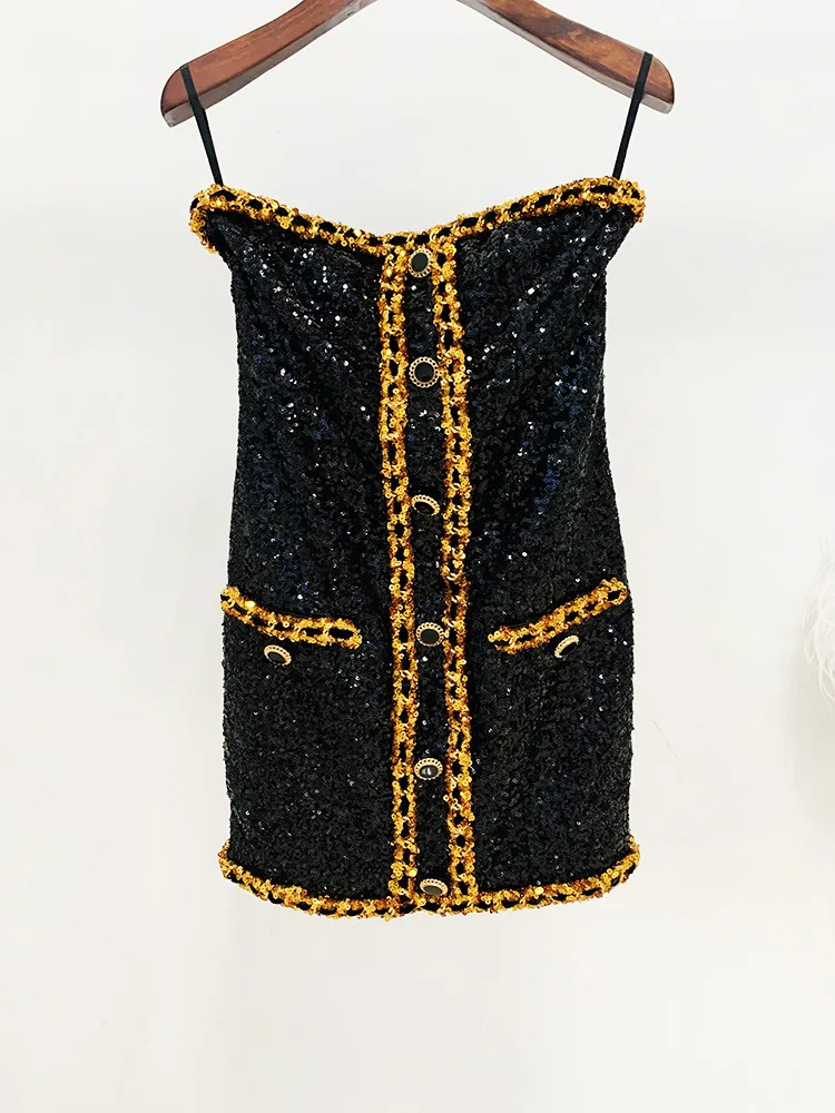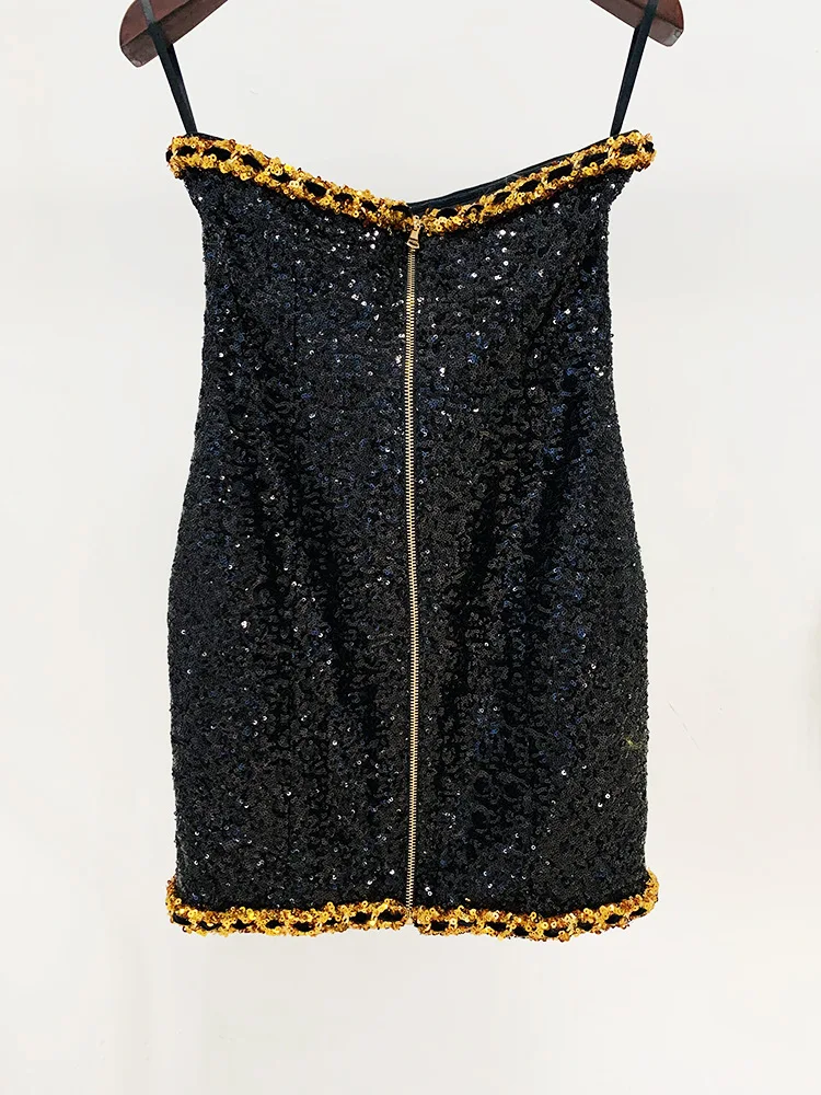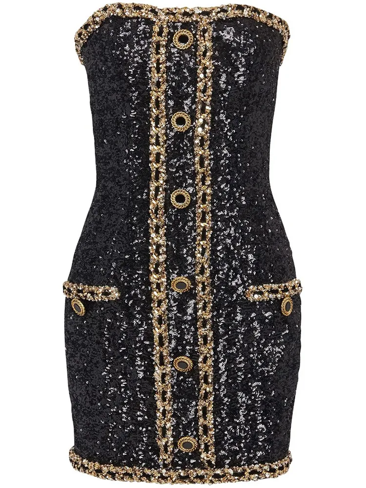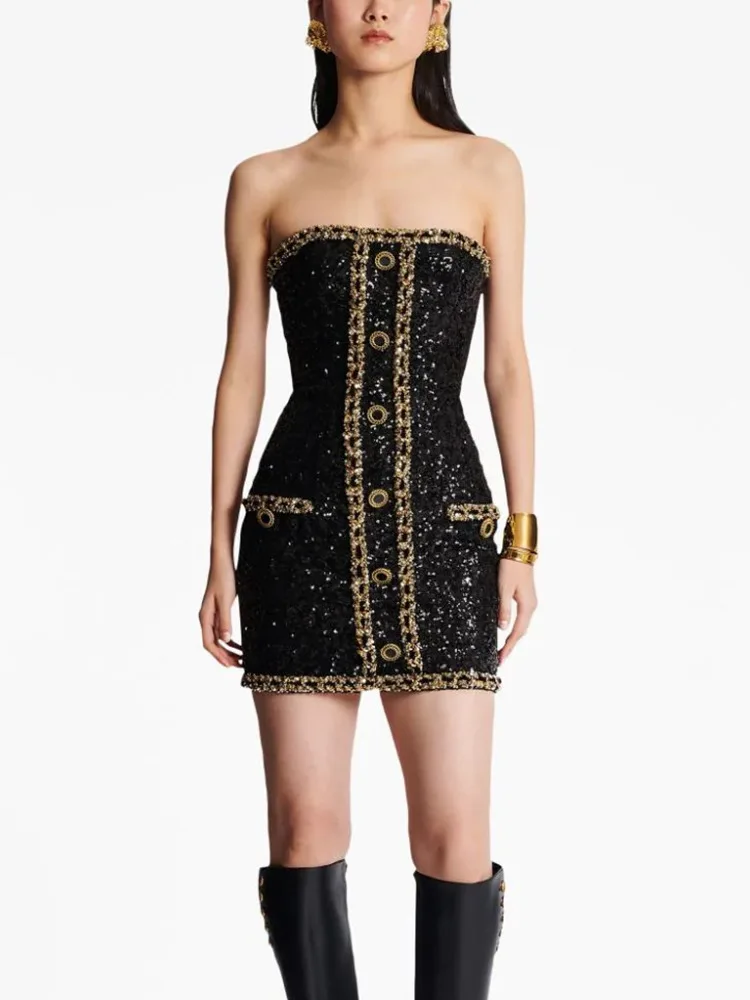 OUDINA In Stock New Style Star Sequin Party Fashion Heavy Industry Chain Tube Top Dress Women