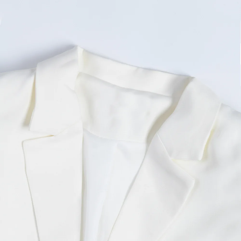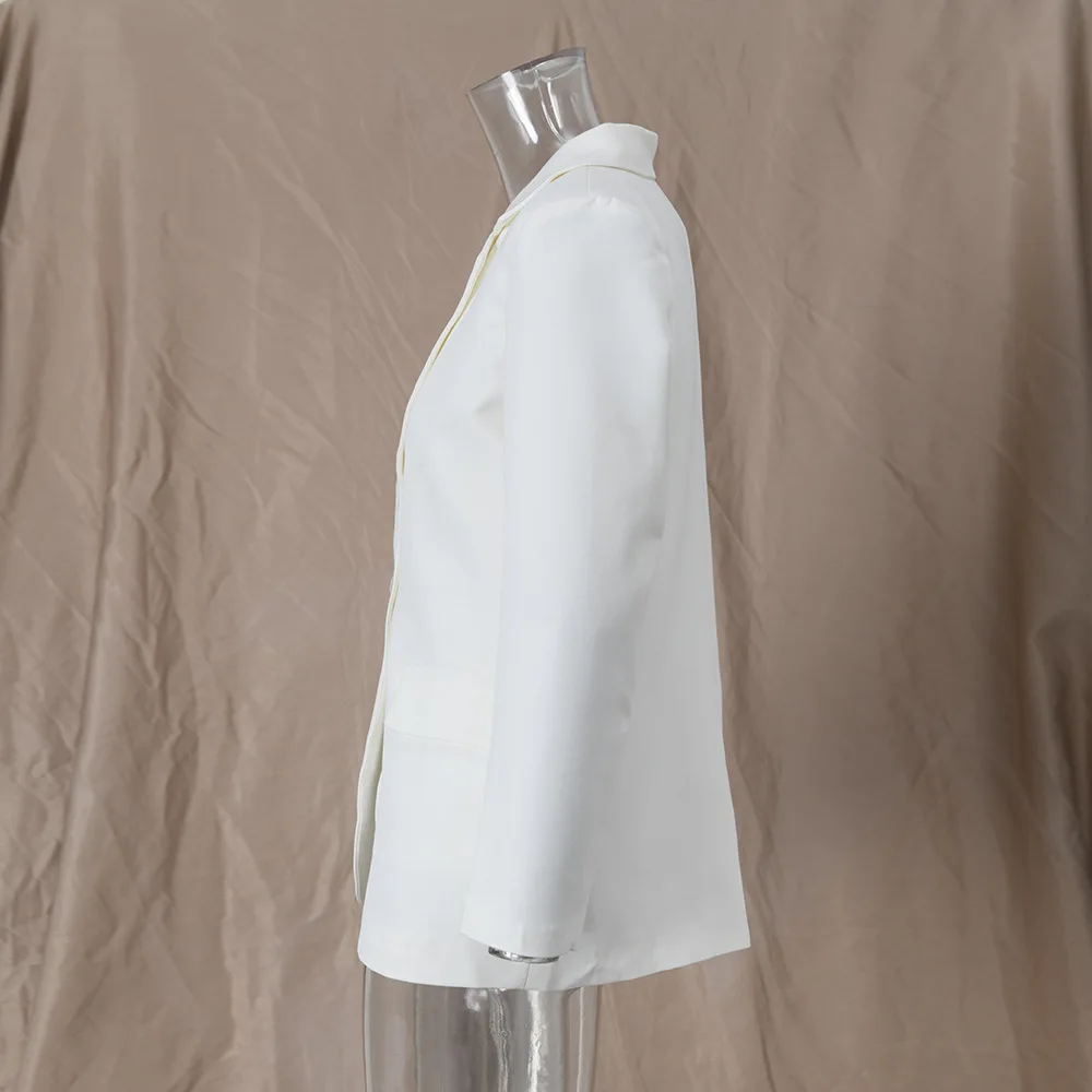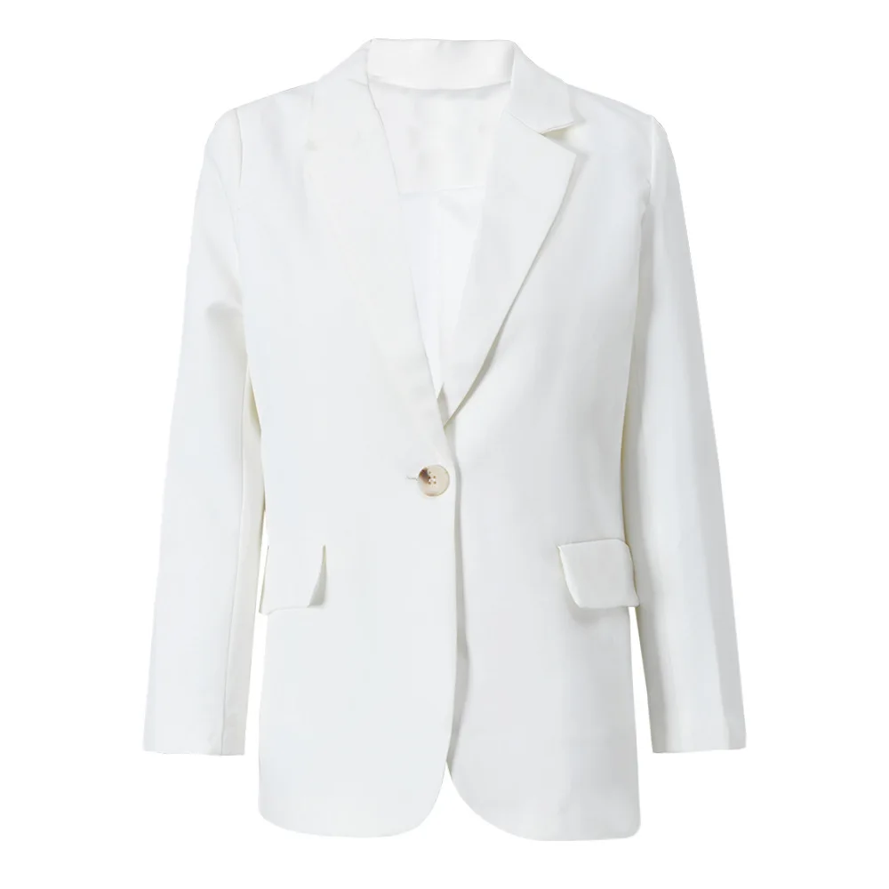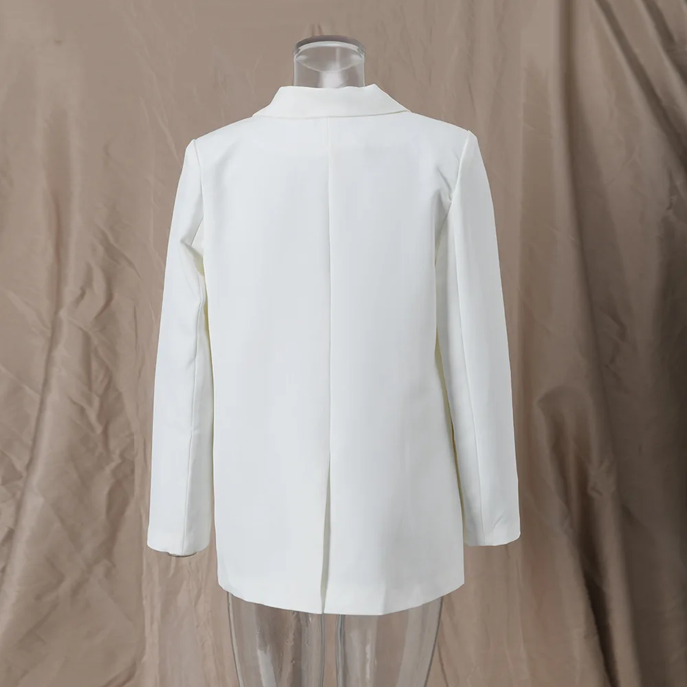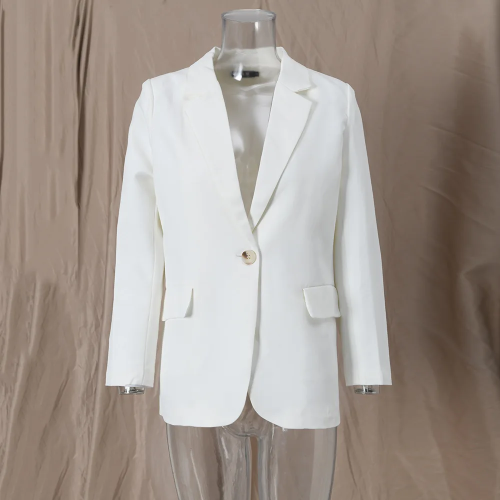 OUDINA Korean Fashion Casual Back Split One Button White Women's Jacket Ladies Blazer