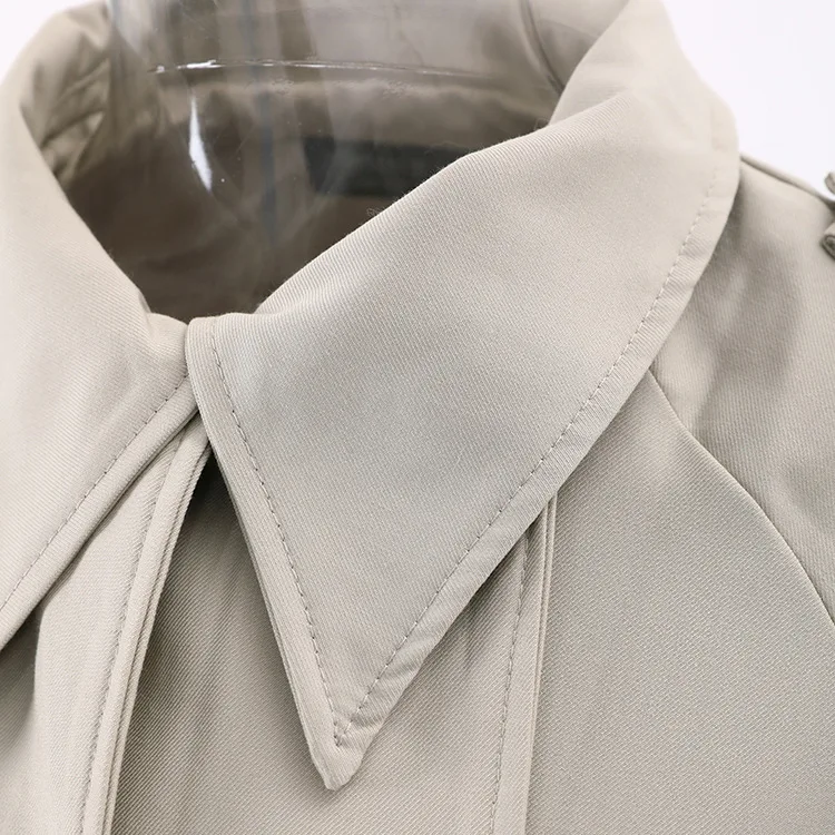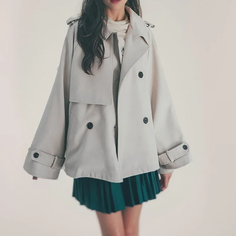 OUDINA New British Style Short Trench Coat Lapel Design Double Breasted Casual Ladies Jackets And Coats