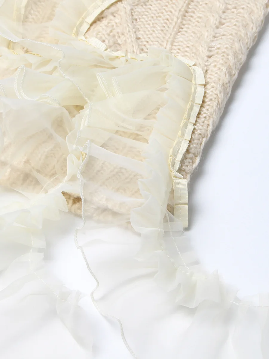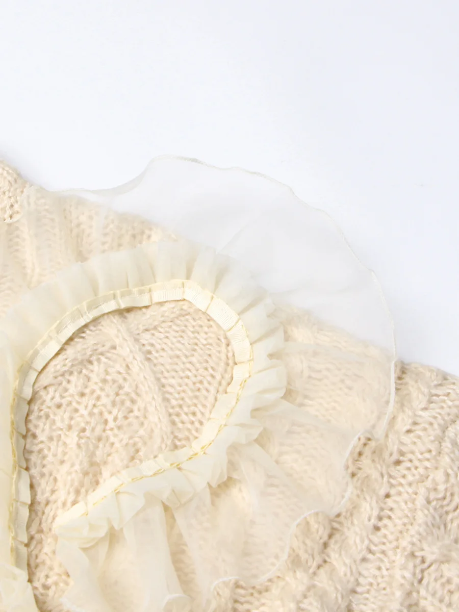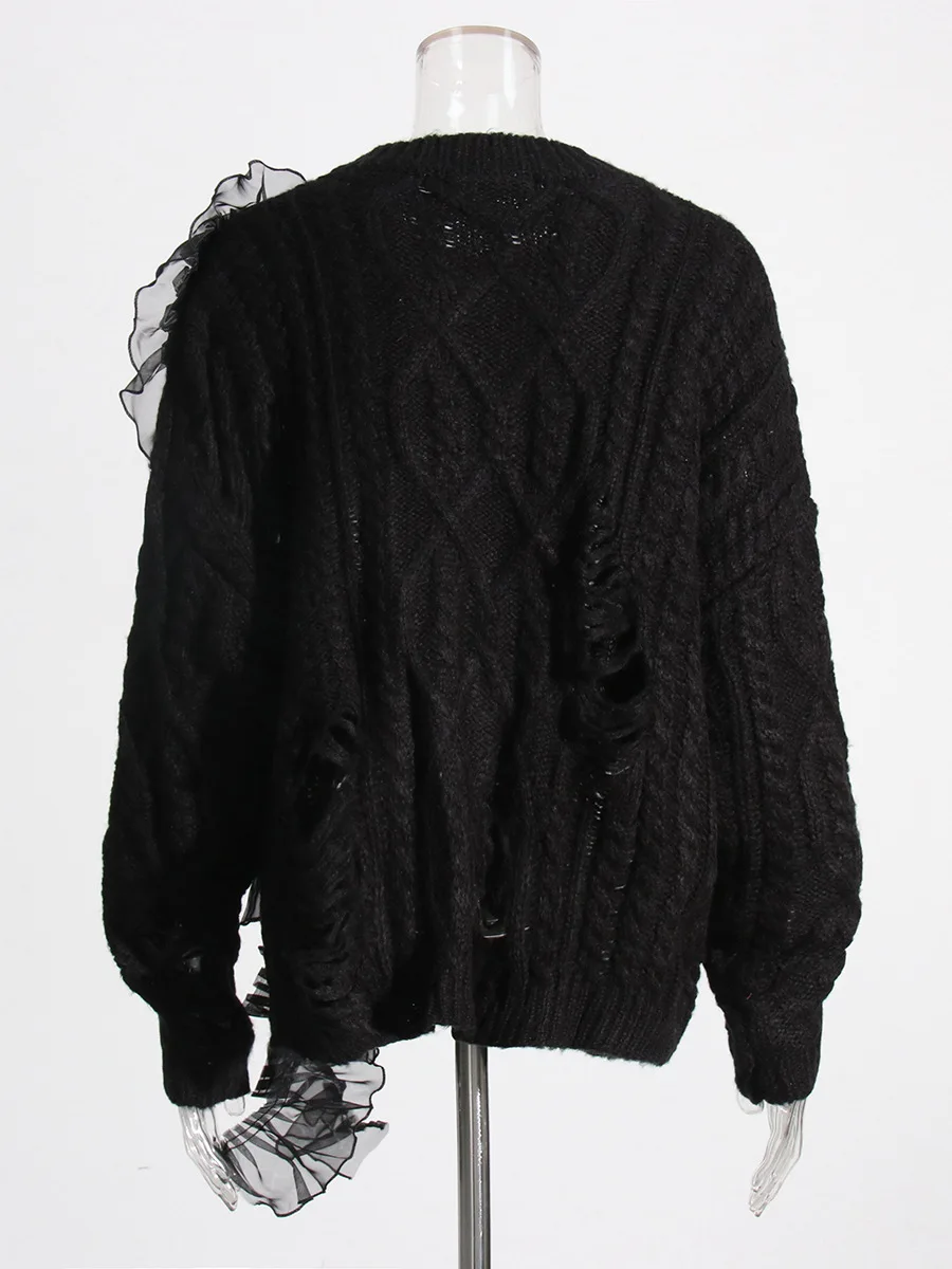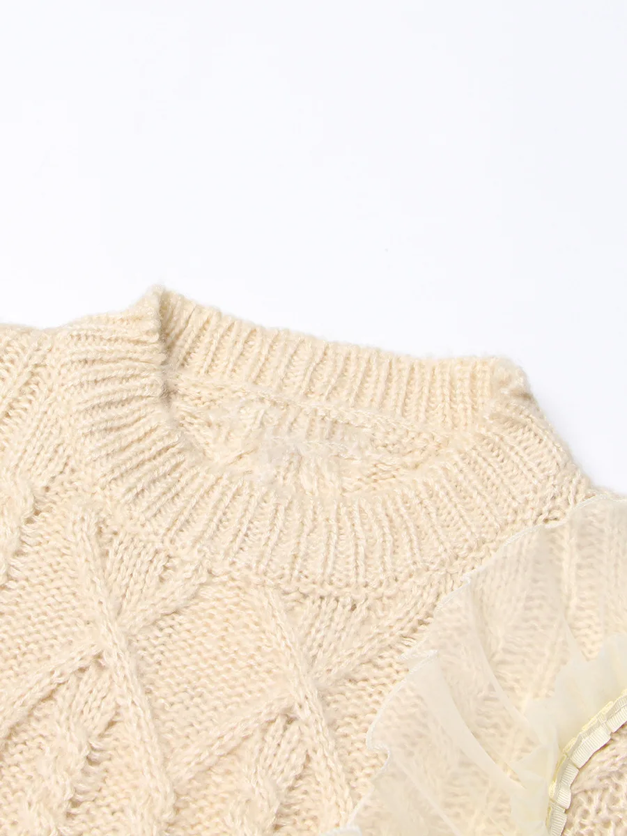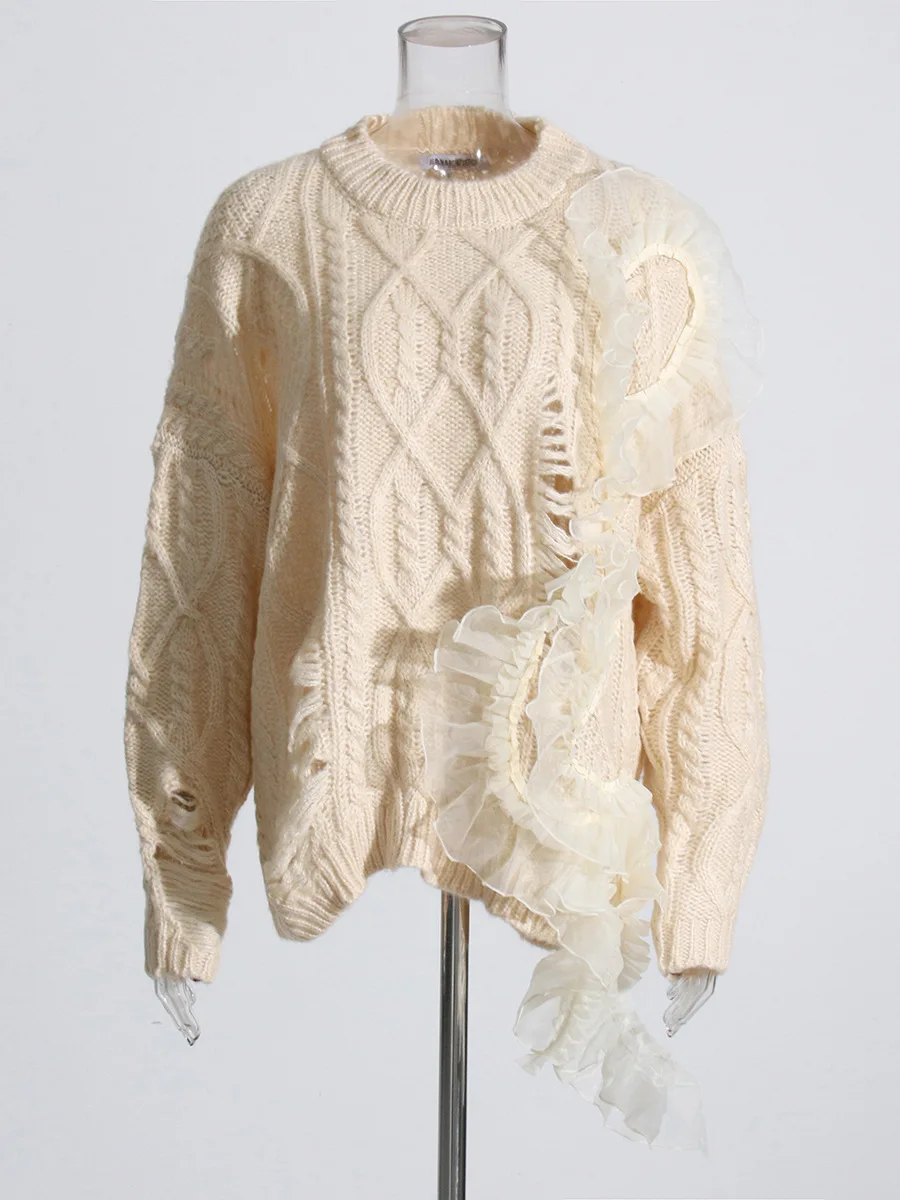 OUDINA New Fashionable Design Splicing Gauze Long Sleeve Casual Pullover Solid Color Sweater For Women